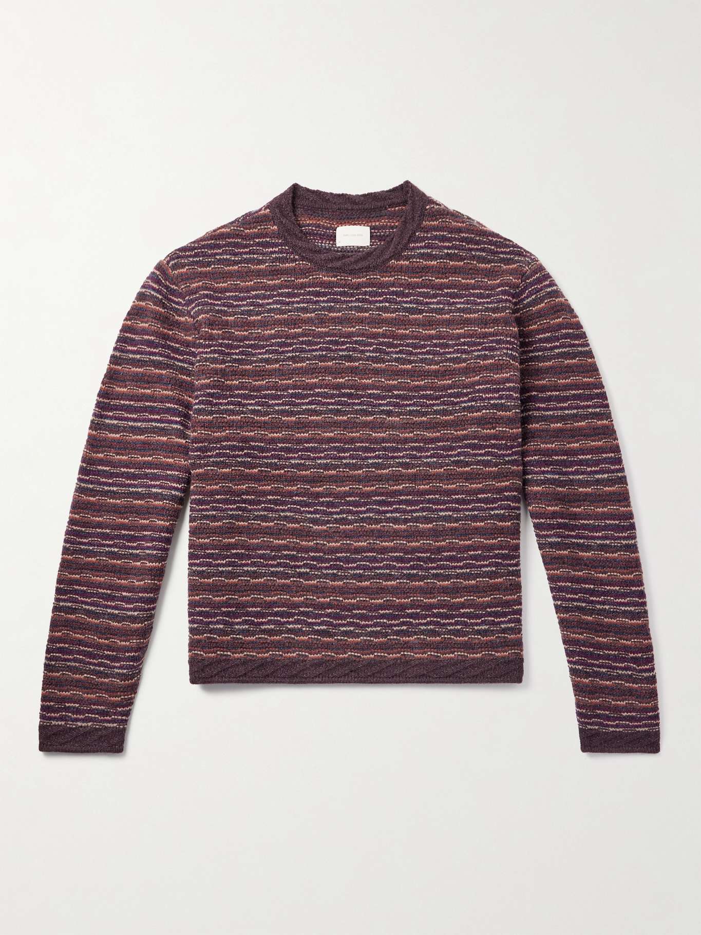 Aimé Leon Dore's 'Abstract' sweater is jacquard-knitted with wavy stripes in a muted, autumnal palette. It's made from wool-blend and traced with coiled trims at the neck, hem and cuffs for texture.