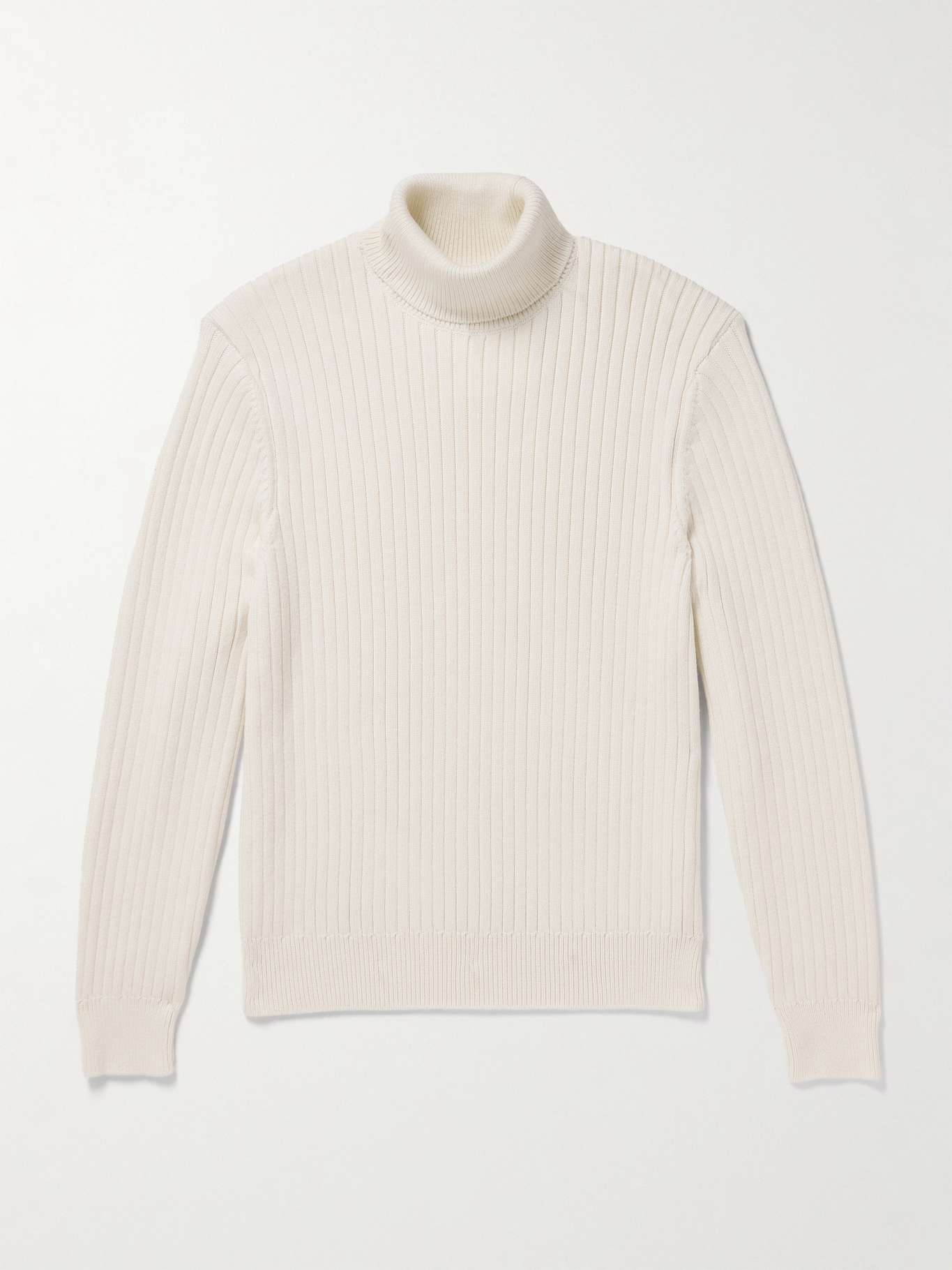 Aimé Leon Dore balances clean, minimal lines with quality design. In a versatile 'Pristine' cream shade, this rollneck sweater is knitted from a merino wool and cotton-blend and has wide ribbing for warmth. Wear yours under a varsity jacket or tailored coat.