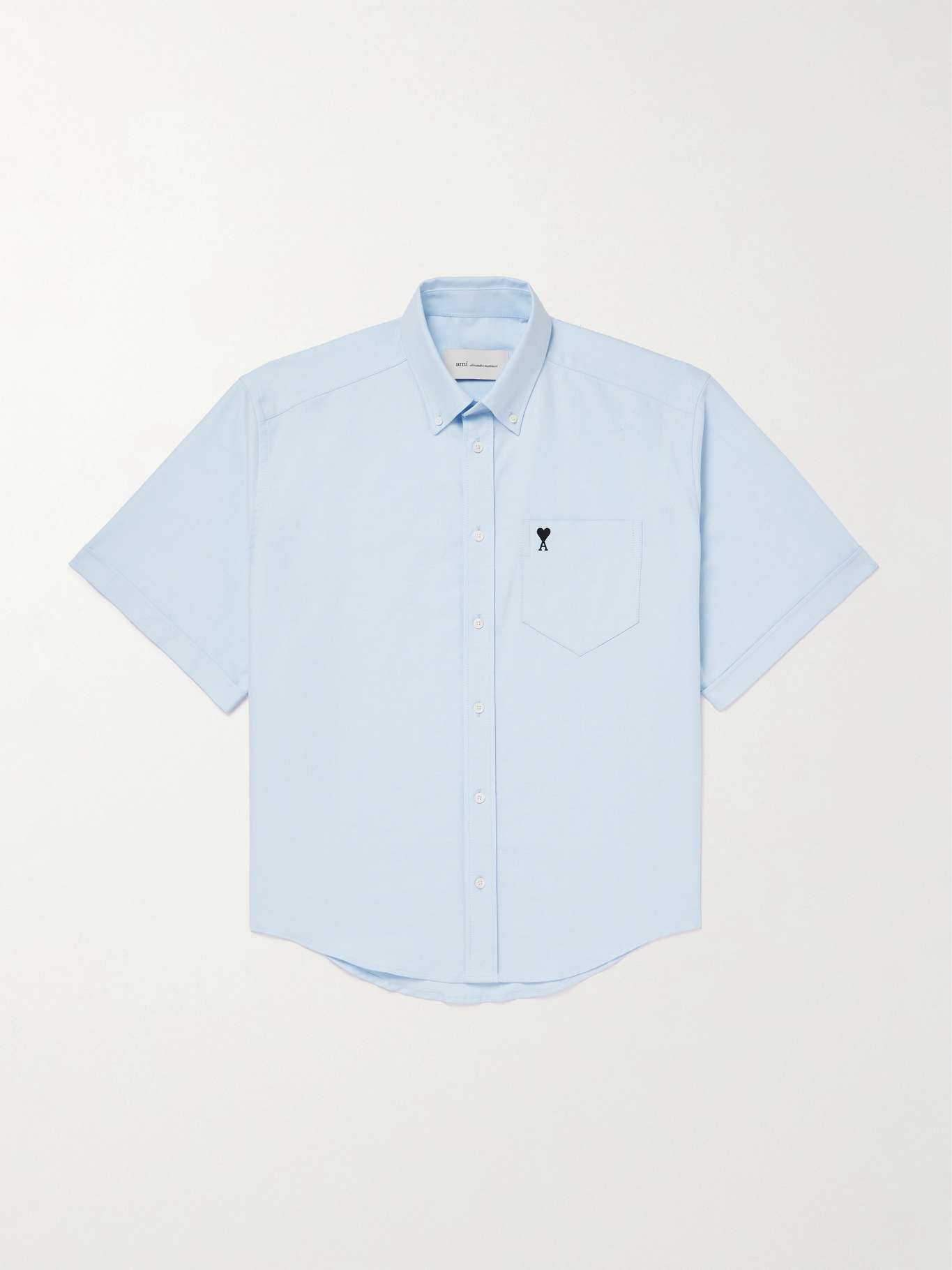 AMI PARIS Button-Down Collar Logo-Embroidered Cotton Shirt