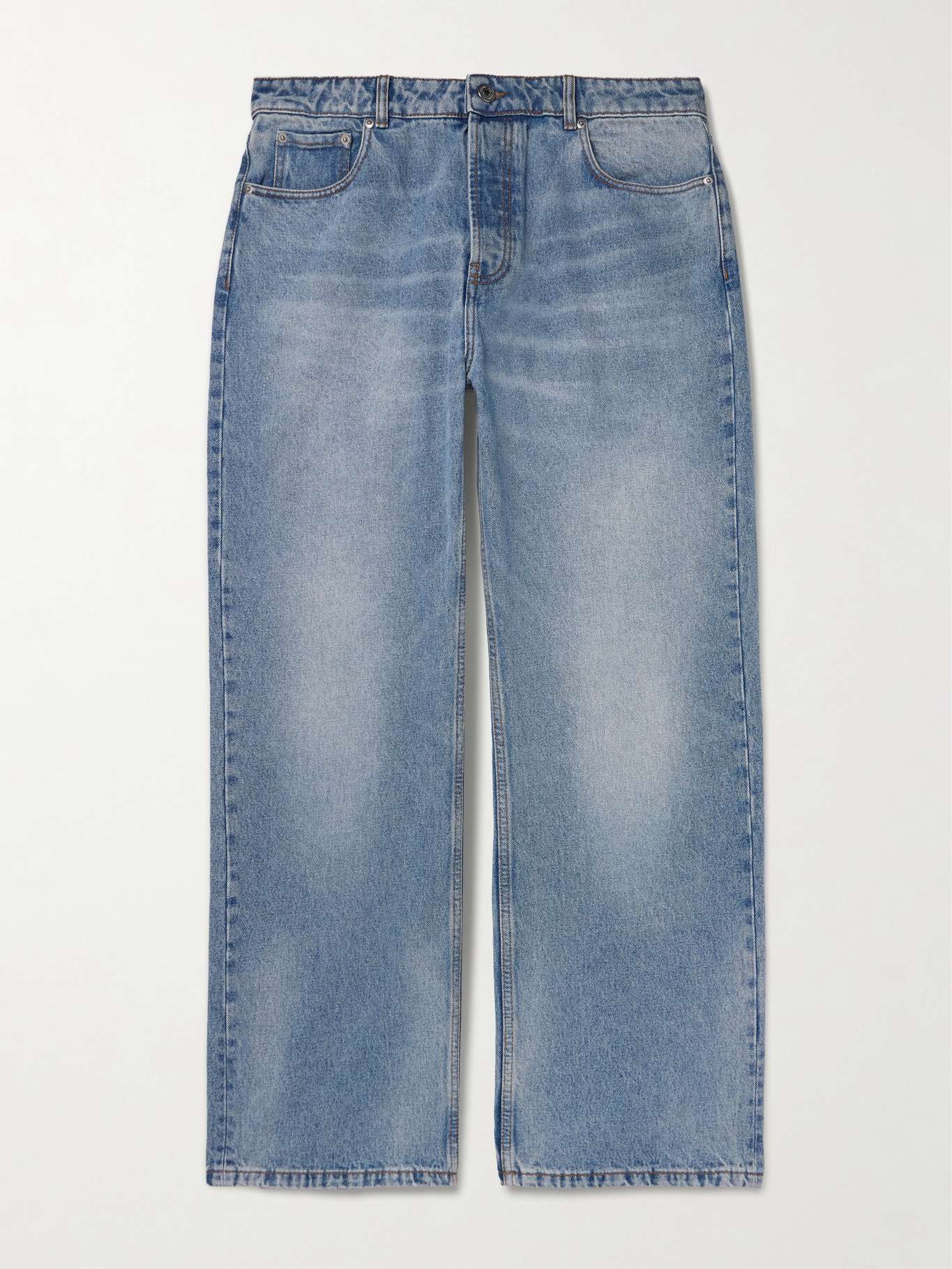 AMI Paris has perfected the wide-leg jean. This pair is cut from denim in a 'Used Blue' wash that's whiskered and faded for a vintage look. Wear them with sneakers, boots or loafers.