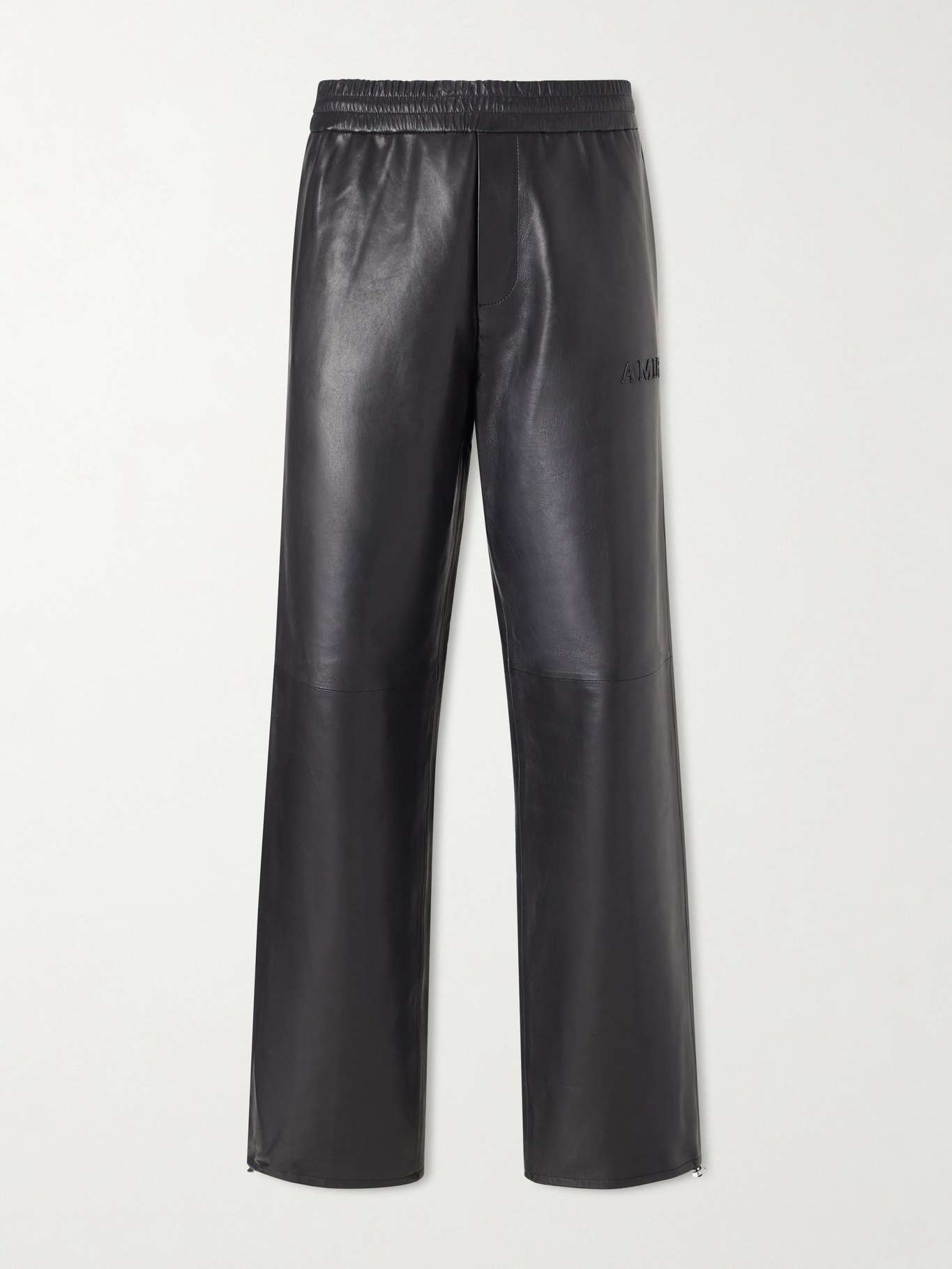 AMIRI Logo-Appliquéd Straight-Leg Leather Trousers