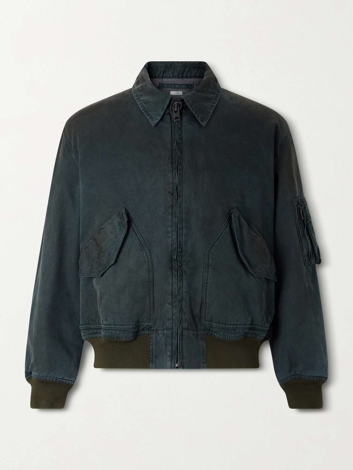A.PRESSE reinterprets archival outerwear with refined fabric choices. This flight jacket is made from cotton and silk-blend in a structured canvas weave. The utilitarian feel is reinforced by a faded wash and contrast ribbed trims.