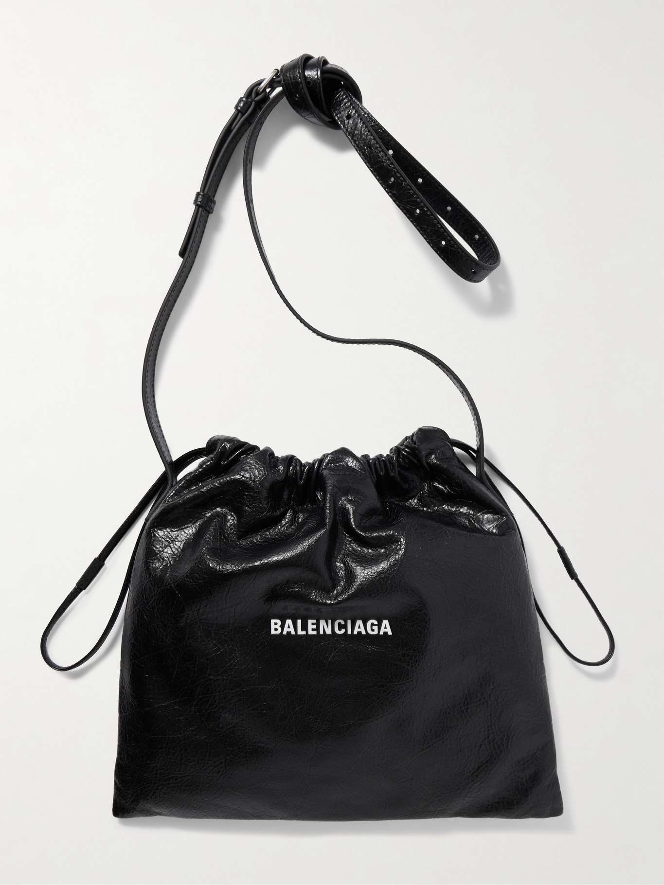 BALENCIAGA Shopper Cracked-Leather Pouch