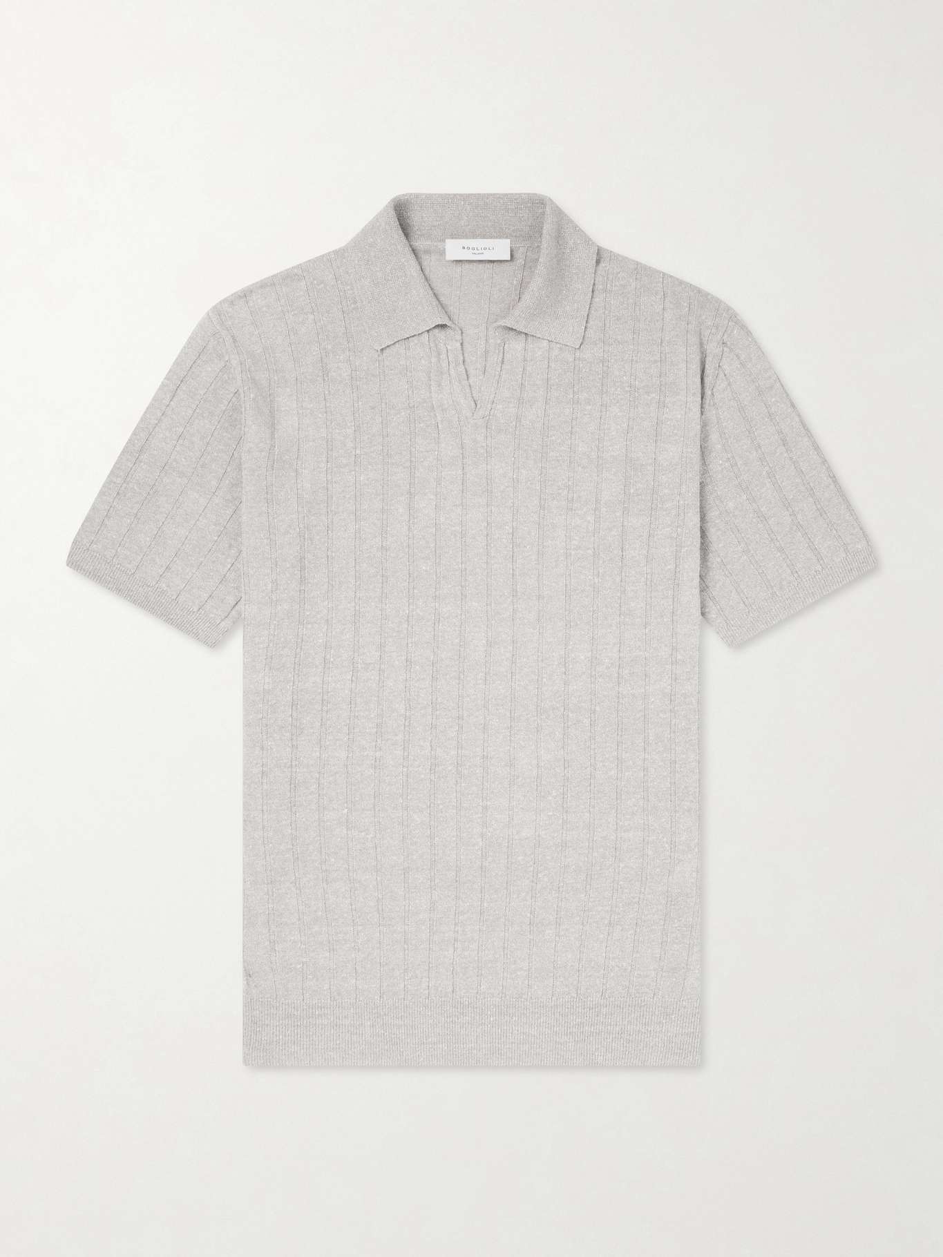 BOGLIOLI Open-Collar Ribbed Linen and Cotton-Blend Polo Shirt