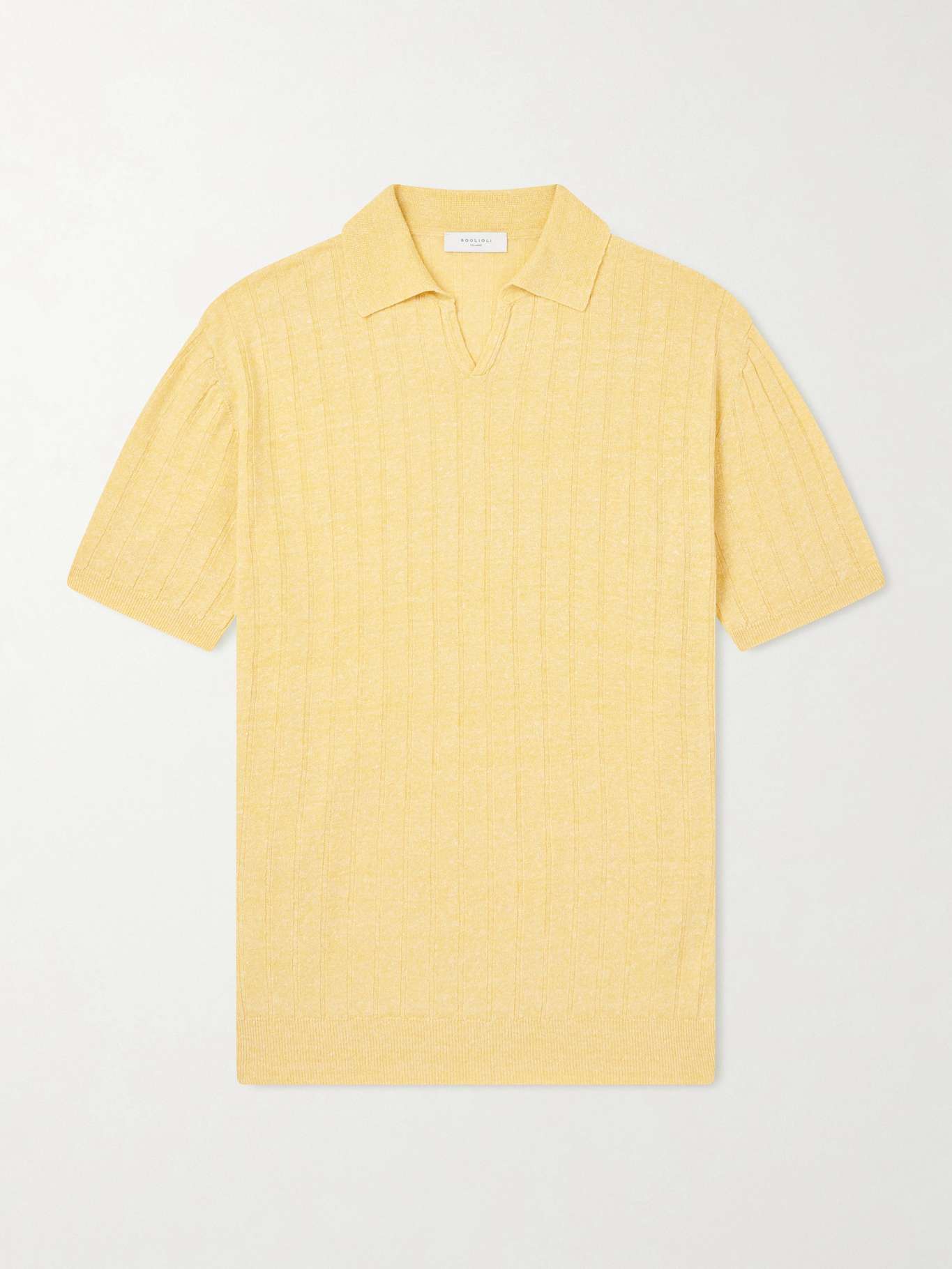 BOGLIOLI Ribbed Linen and Cotton-Blend Polo Shirt