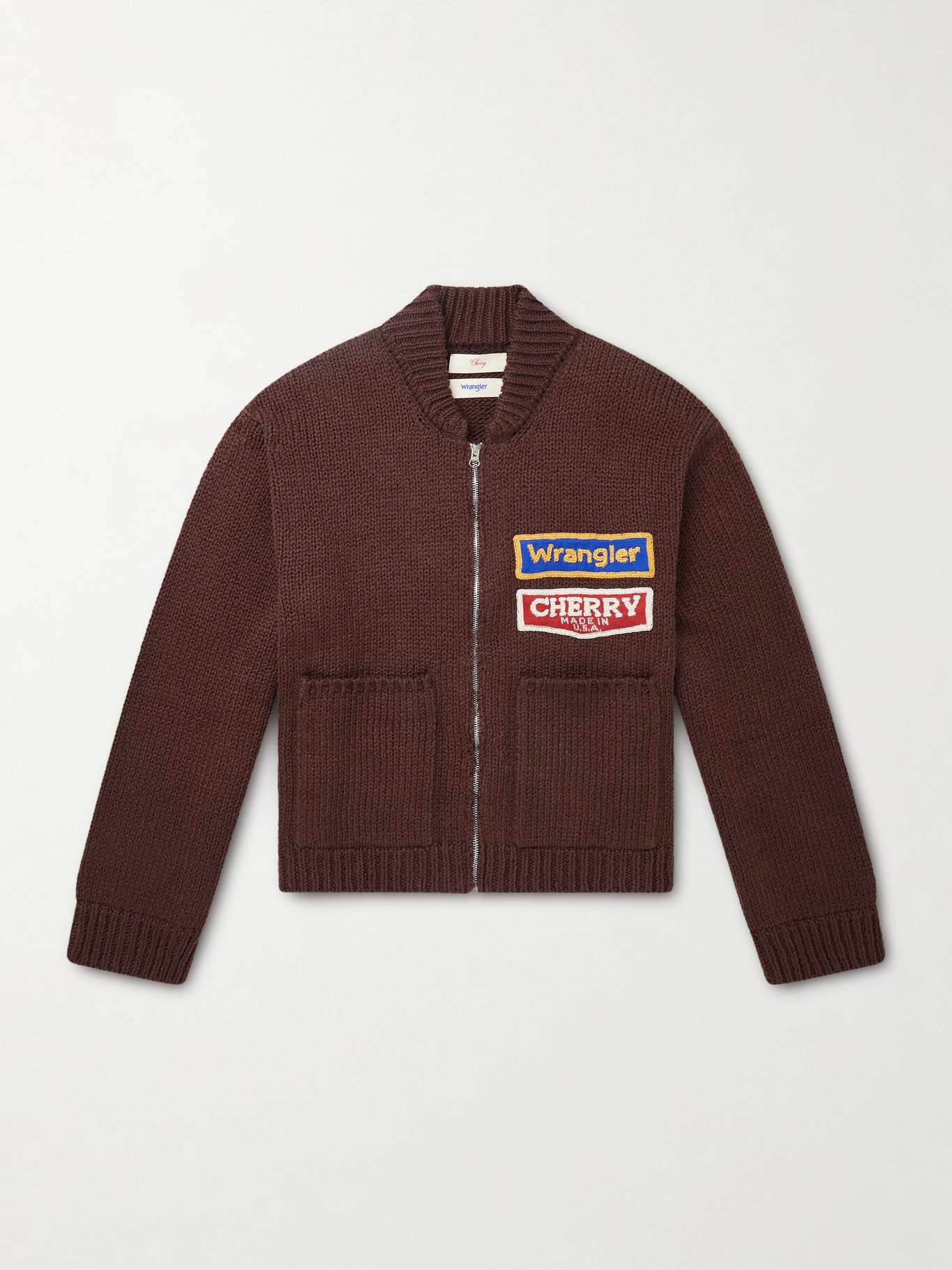 Cherry Los Angeles and Wrangler's collaboration celebrates classic all-American style. Branded with both logos on the chest, this jacket is knitted from cotton and features ribbed trims and a zip-through front. The back is embroidered with an outline of Wrangler's horse emblem.
