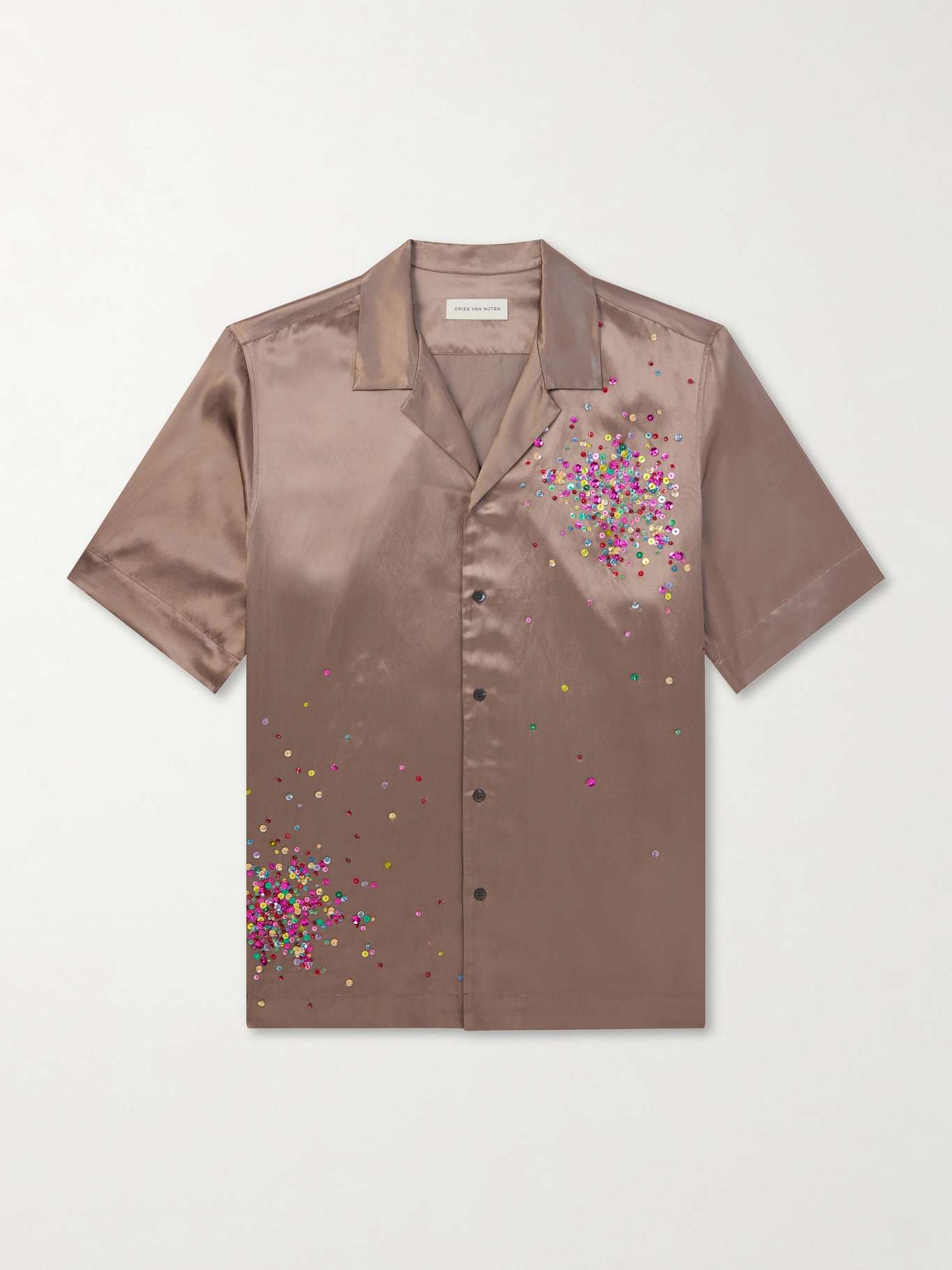 Dries Van Noten's clothing stands out thanks to the label's knack for luxe fabrics and eye-catching detail. This camp-collar shirt is cut for a slightly loose fit from smooth satin and embellished with colourful sequins and crystals.