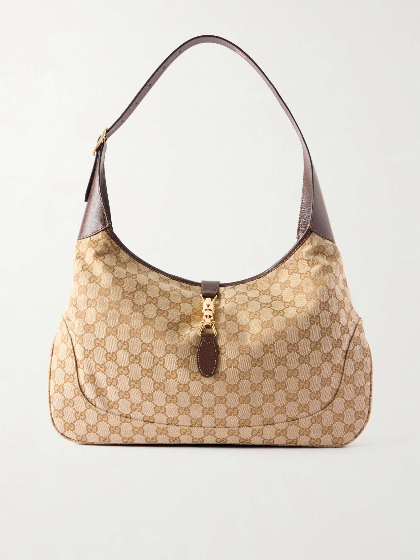GUCCI Jackie 1961 Large Leather-Trimmed Monogrammed Canvas Messenger Bag