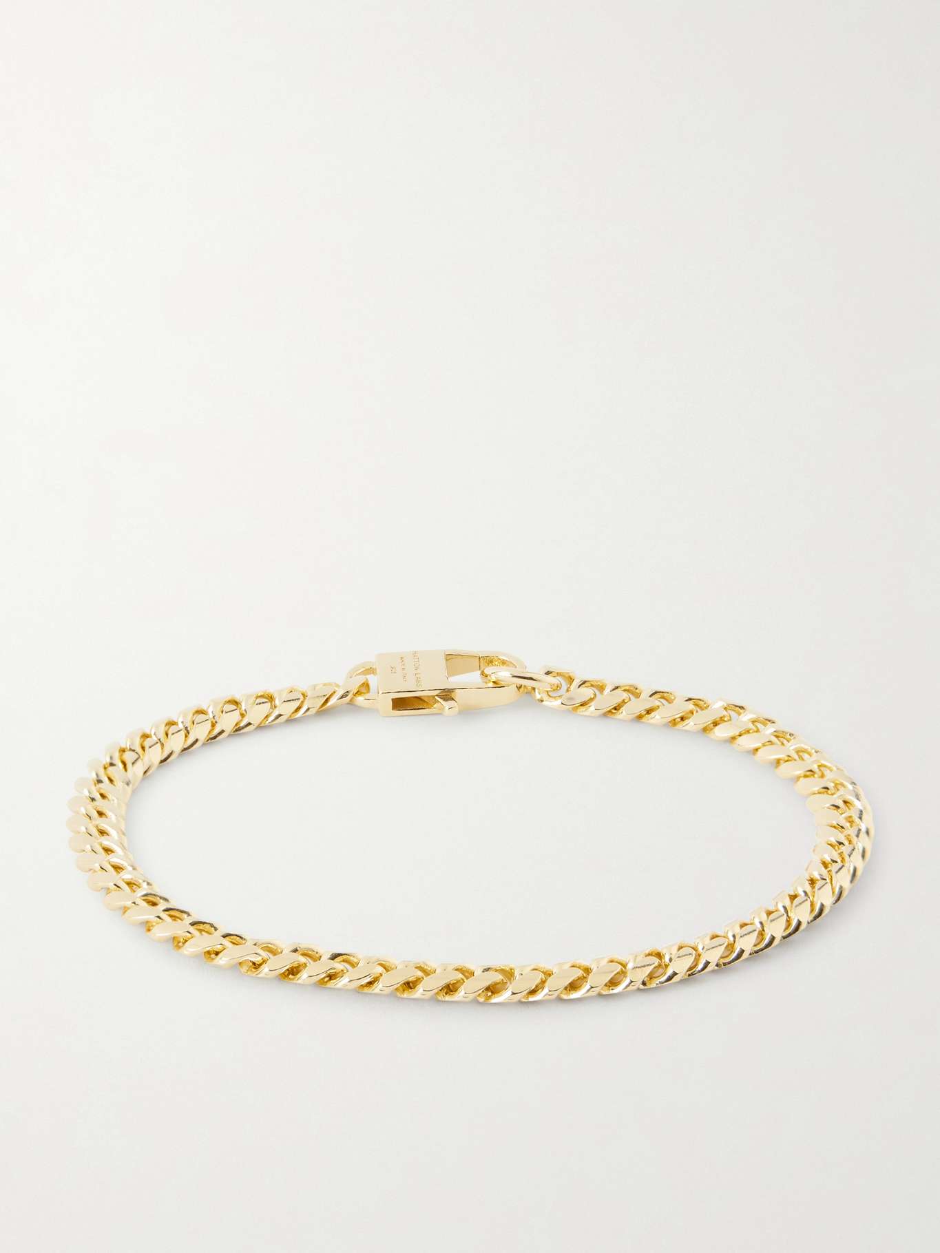 Hatton Labs' 'Miami' Cuban chain bracelet features weighty, compact links for a streamlined look. It's been made in Italy from polished gold-plated metal and is engraved with the brand name on the oversized lobster clasp.