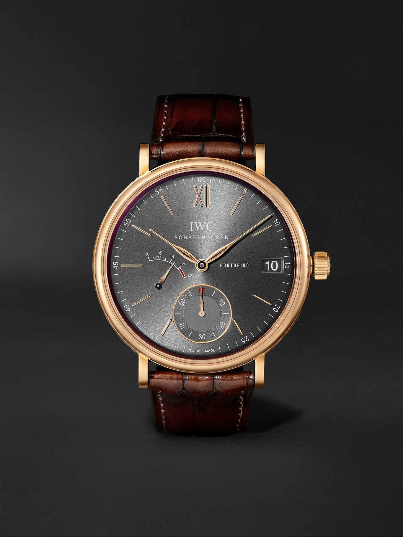 IWC SCHAFFHAUSEN Portofino Hand-Wound Eight Days 45mm 18-Karat Rose Gold and Alligator Watch, Ref. No. IWIW510104