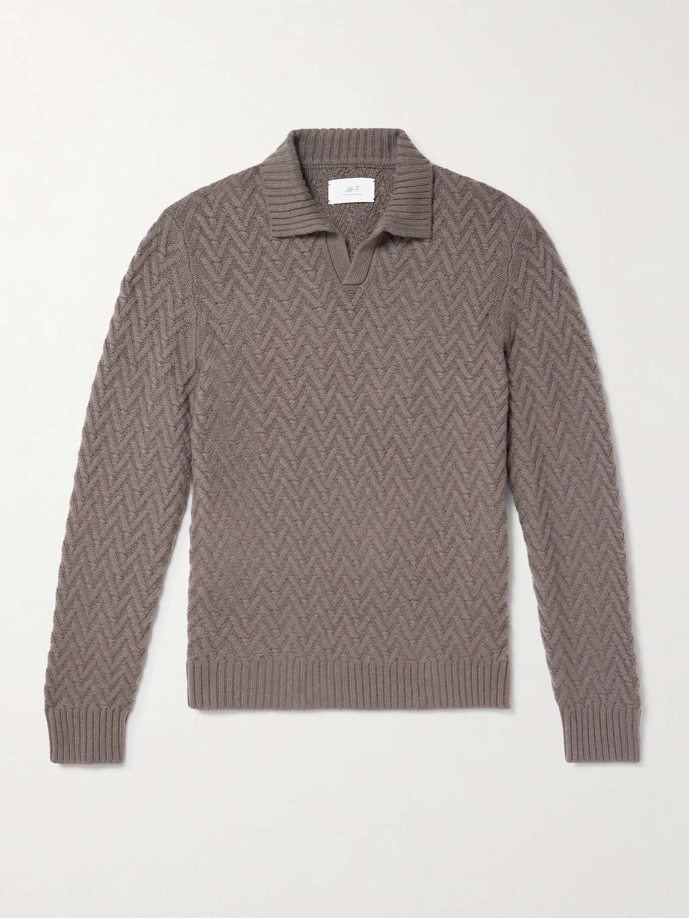 DESIGNED BY MR PORTER. Mr P.'s rugby-style polo shirt is jacquard-knitted with neat chevrons. It's made from tonal-brown wool and cashmere-blend and has a relaxed fit.