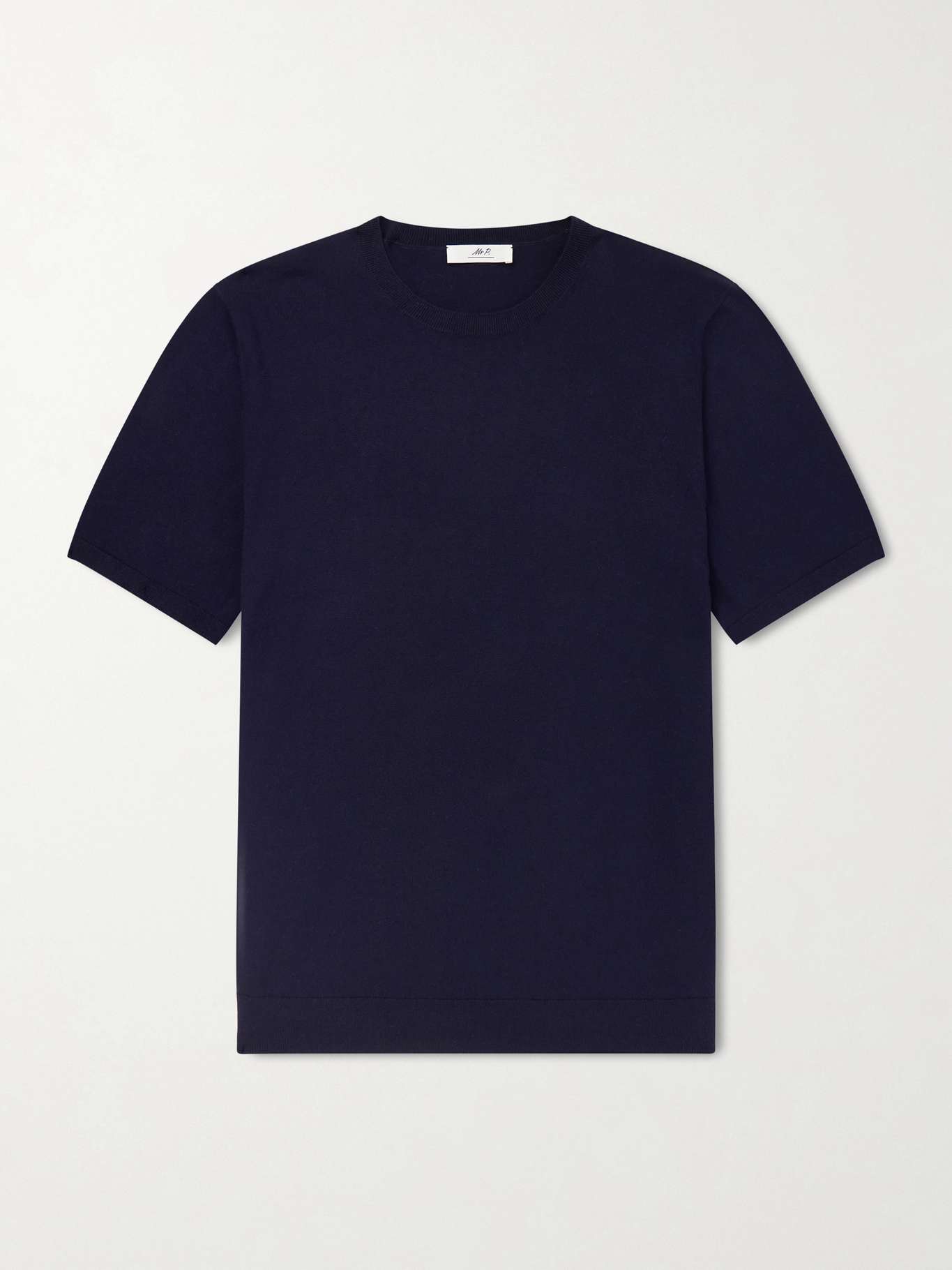 DESIGNED BY MR PORTER. Mr P.'s T-shirt feels extra soft thanks to the organic cotton and cashmere-blend it's knitted from. It's slightly thicker than jersey and looks great with pleated trousers.