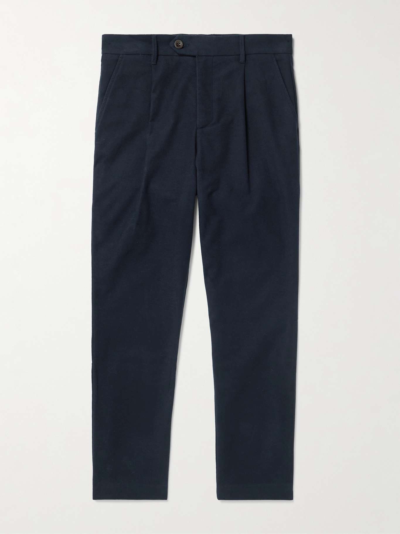 DESIGNED BY MR PORTER. Mr P.'s 'Daniel' trousers are cut from organic cotton-blend moleskin that's naturally smooth and resilient. They're tailored with front pleats to emphasise the tapered profile.