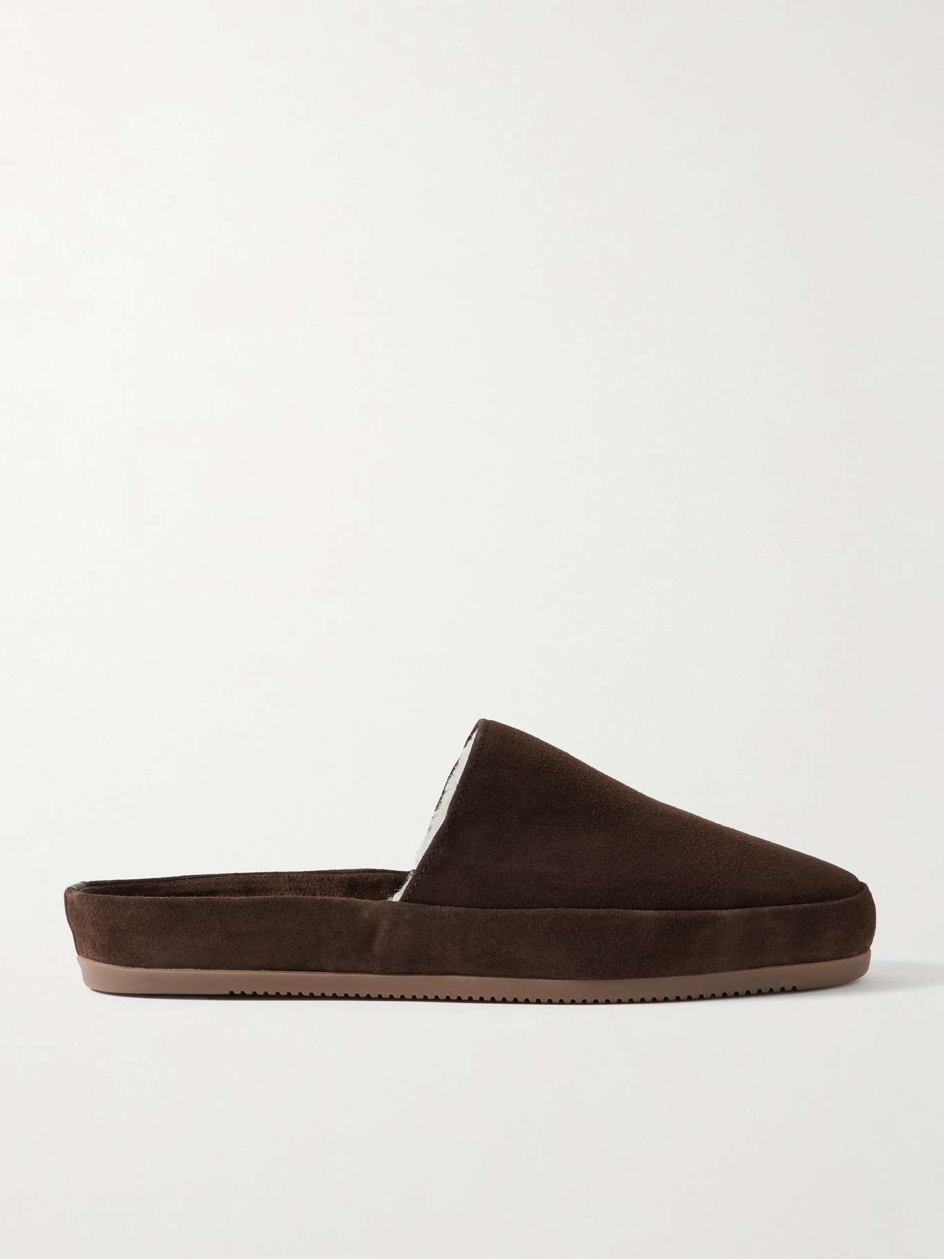Mulo designs slippers that are as comfortable as they are versatile. Shaped on an Oxford last, this pair is handmade from Italian suede, lined in soft, warm shearling and set on gripped rubber soles.