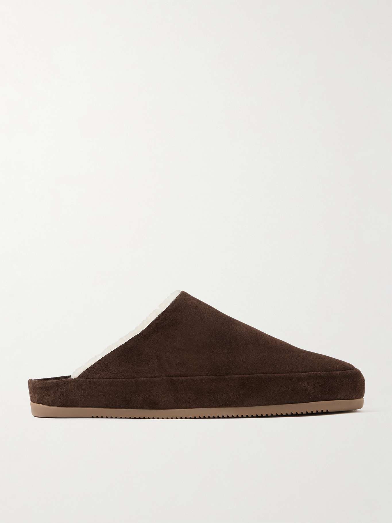 Mulo's backless slippers are lined in plush shearling that will keep your feet warm without overheating. They're made from velvety suede and set on gripped rubber soles.