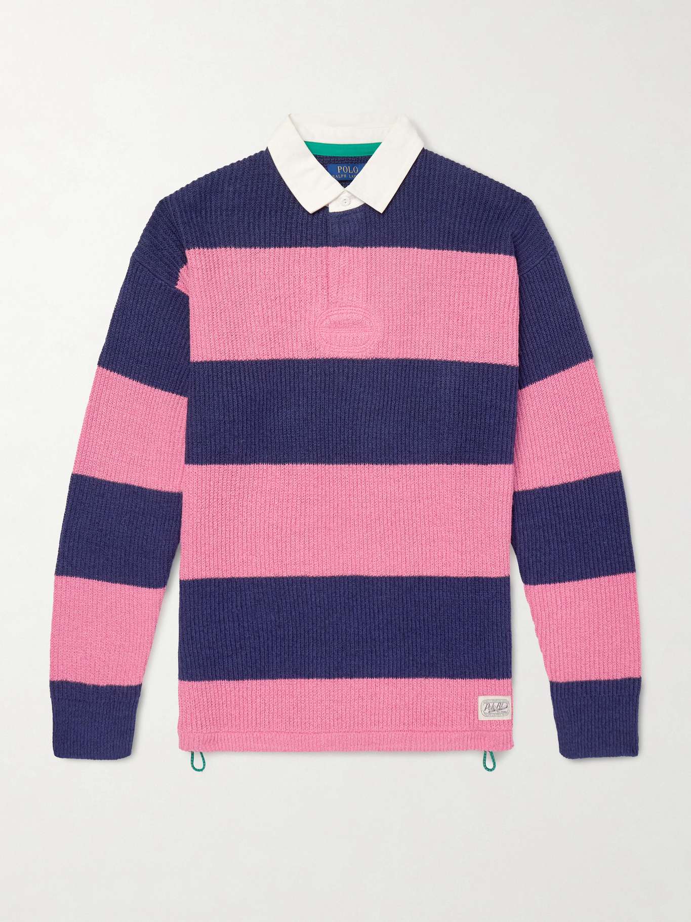 POLO RALPH LAUREN Striped Ribbed Linen and Cotton-Blend Polo Shirt