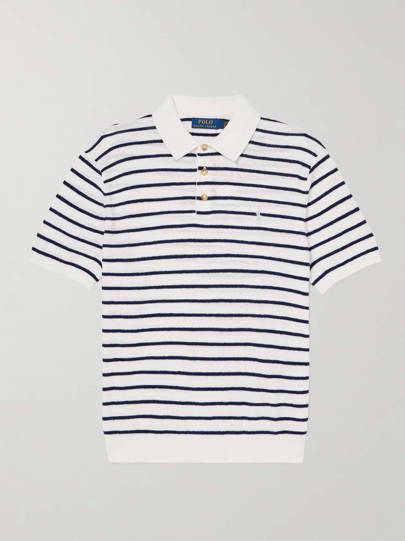 POLO RALPH LAUREN Striped Cotton and Linen-Blend Polo Shirt