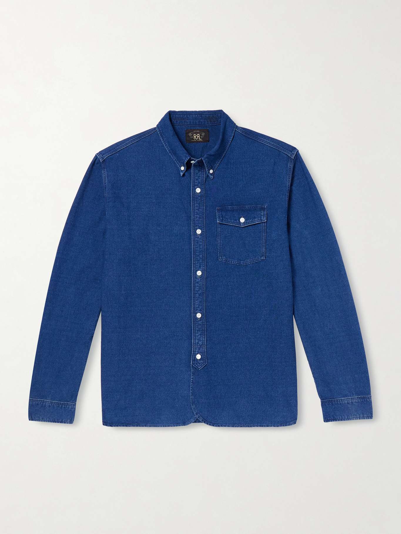 Ralph Lauren's Colorado homestead may shape the mood of RRL's collections, but the brand searches far and wide for textile excellence. This shirt is cut from indigo-dyed Japanese cotton Oxford and washed for a timeworn, denim effect. The chain-stitched seams nod to authentic century-old workwear.