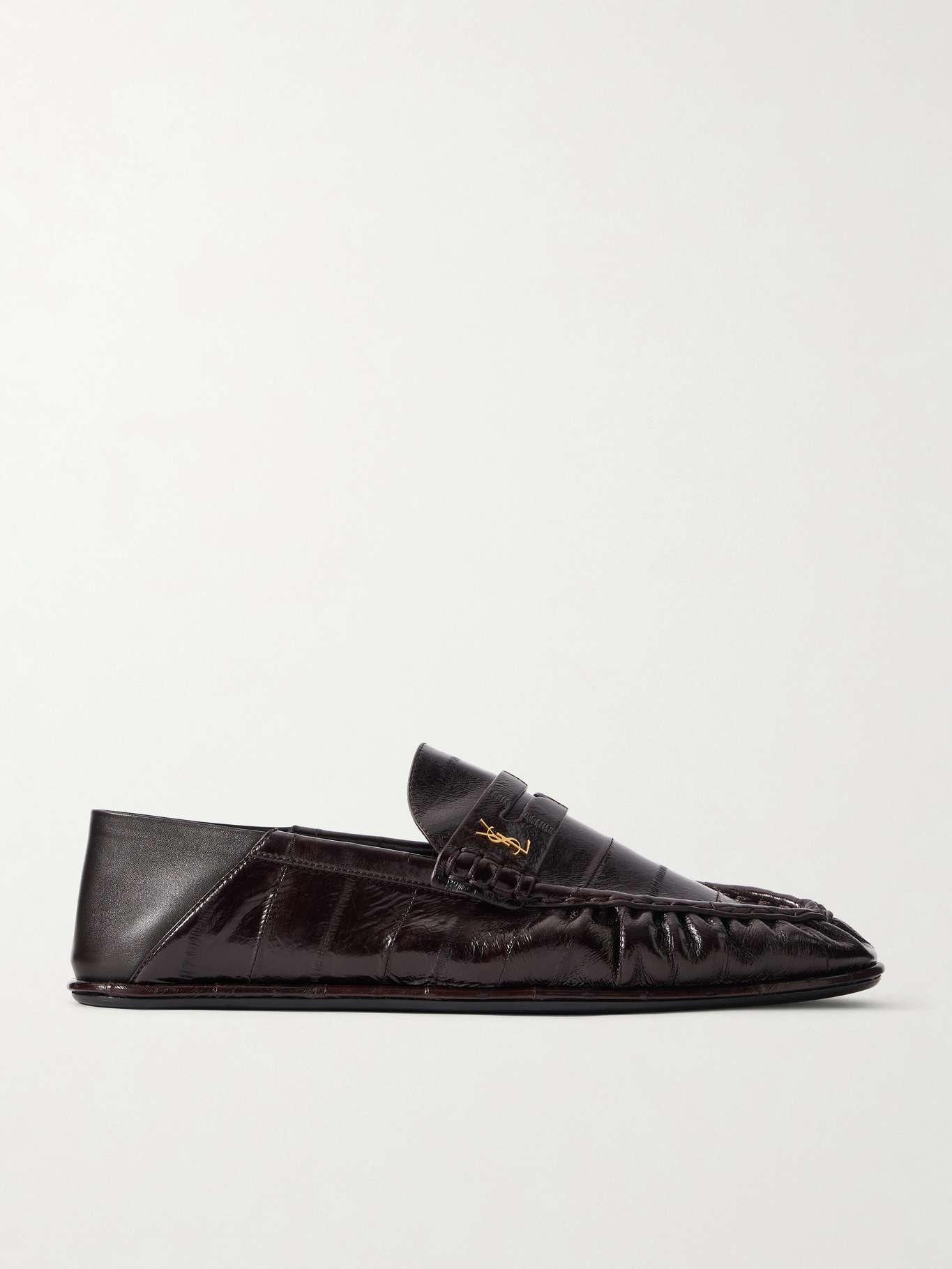 SAINT LAURENT Le Loafer Monogram Logo-Appliquéd Eel Penny Loafers