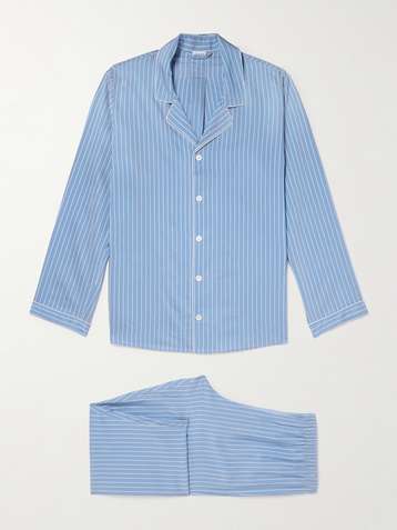 Camp-Collar Striped Woven Pyjama Set