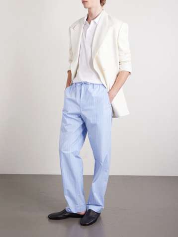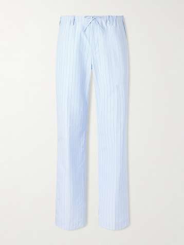 Straight-Leg Striped Cotton-Poplin Drawstring Trousers
