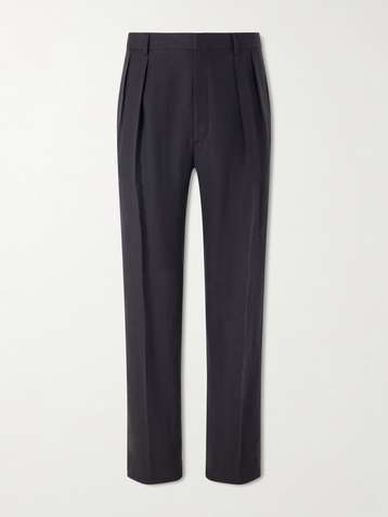 Straight-Leg Pleated Virgin Wool, Silk and Linen-Blend Trousers