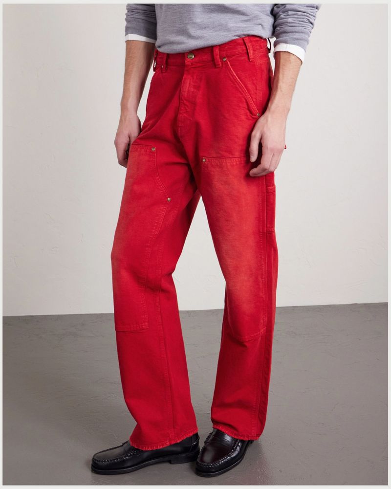 Can red trousers be blue collar? Once sartorial signifiers of wealth, the money has since shifted to quiet luxury, leaving them open to reinterpretation. Cherry Los Angeles’ industrious and hardwearing workpants in this vibrant tone, then, come with tool loops, reinforced knees and we assume a knowing wink.