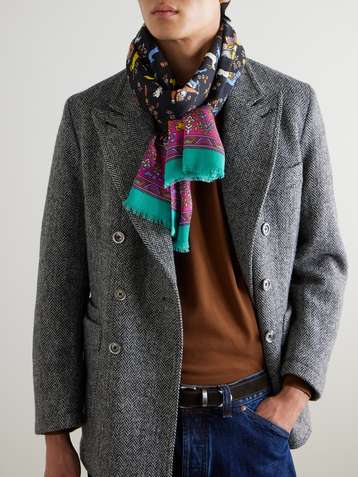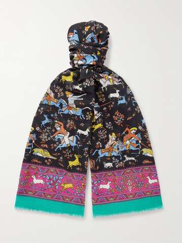 + HIM Mughal Fringed Printed Wool and Silk-Blend Scarf