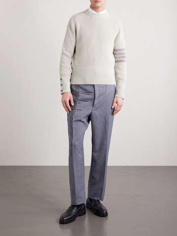 American designer Thom Browne founded his namesake label in 2001. Renowned for distinctive tailoring - cropped cuts and a mostly grey and navy colour palette - the brand creates smart, premium staples, often with a playful or preppy twist.