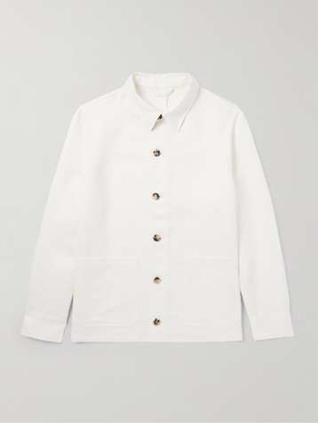 Slim-Fit Unstructured Double-Breasted Linen Suit Jacket