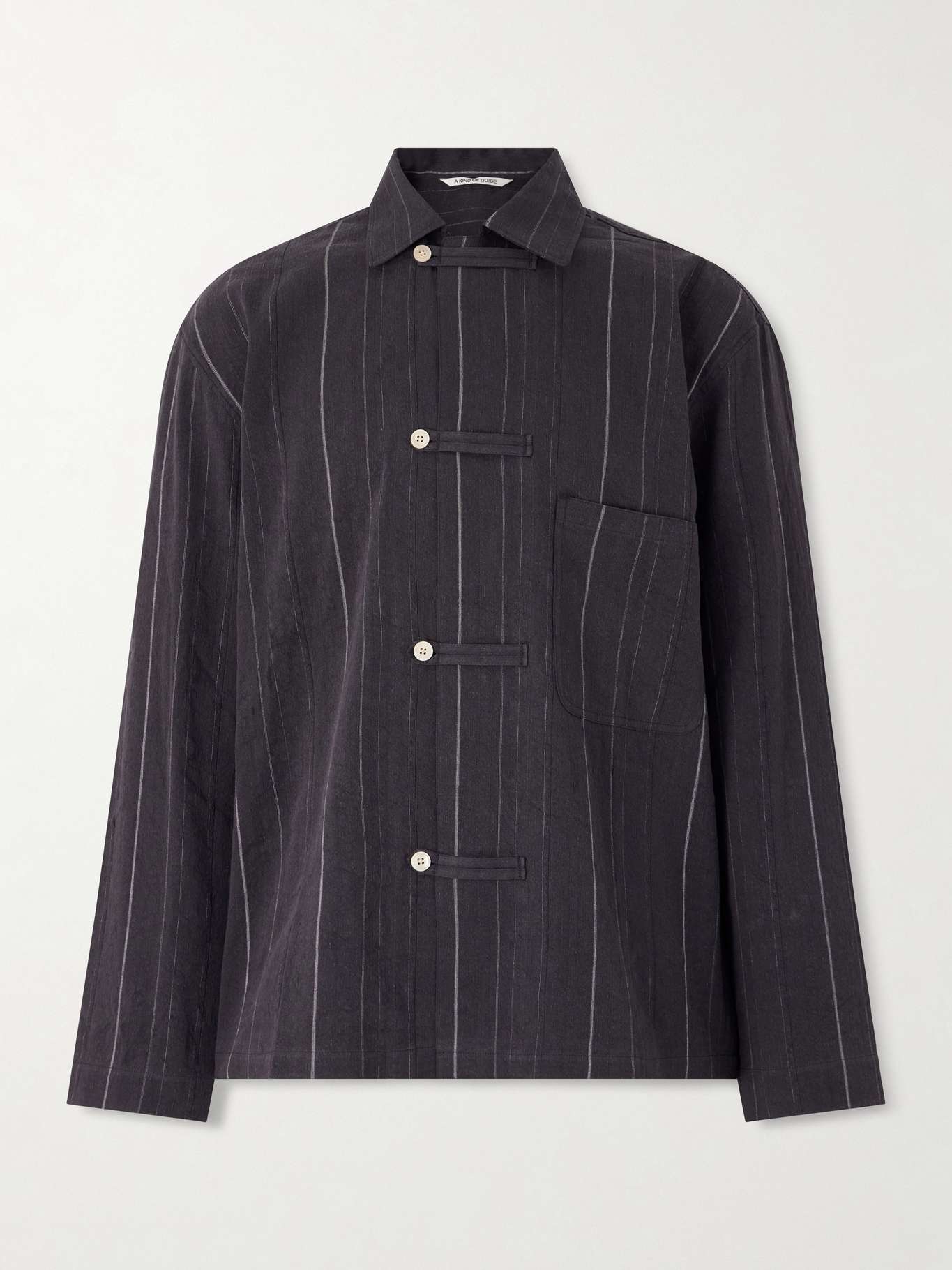 A KIND OF GUISE Matara Cropped Pinstriped Cotton and Linen-Blend Overshirt