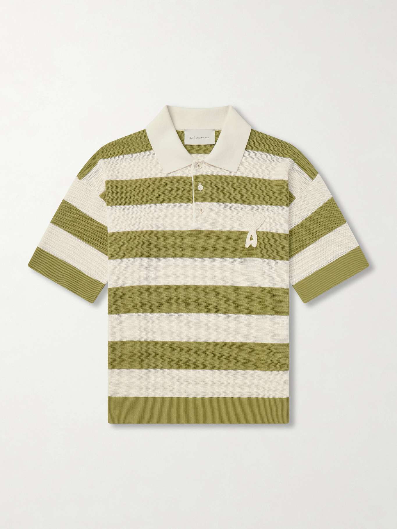 AMI PARIS Logo-Embroidered Knitted Cotton Polo Shirt
