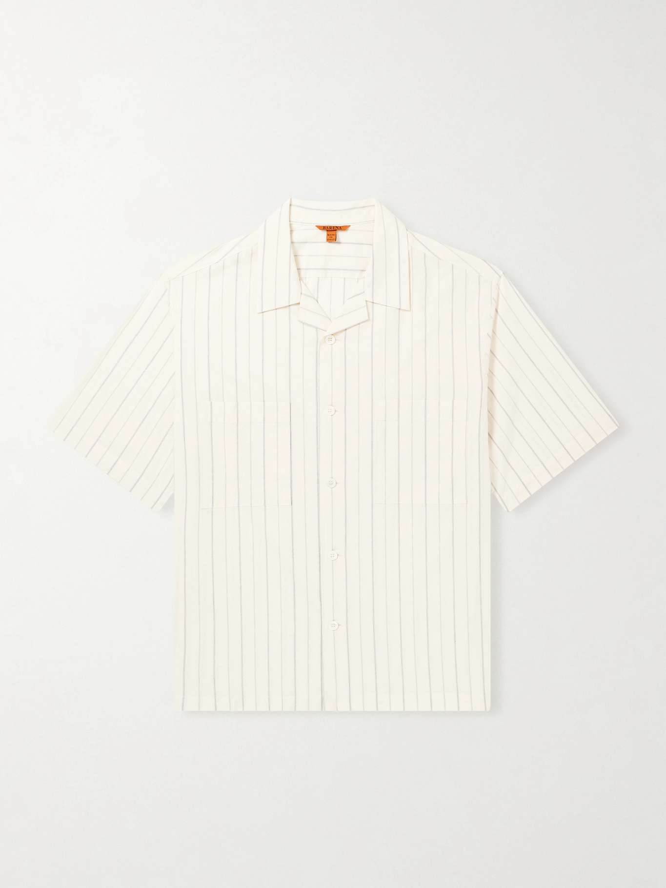 BARENA Cuban-Collar Garment-Dyed Striped Cotton-Poplin Shirt