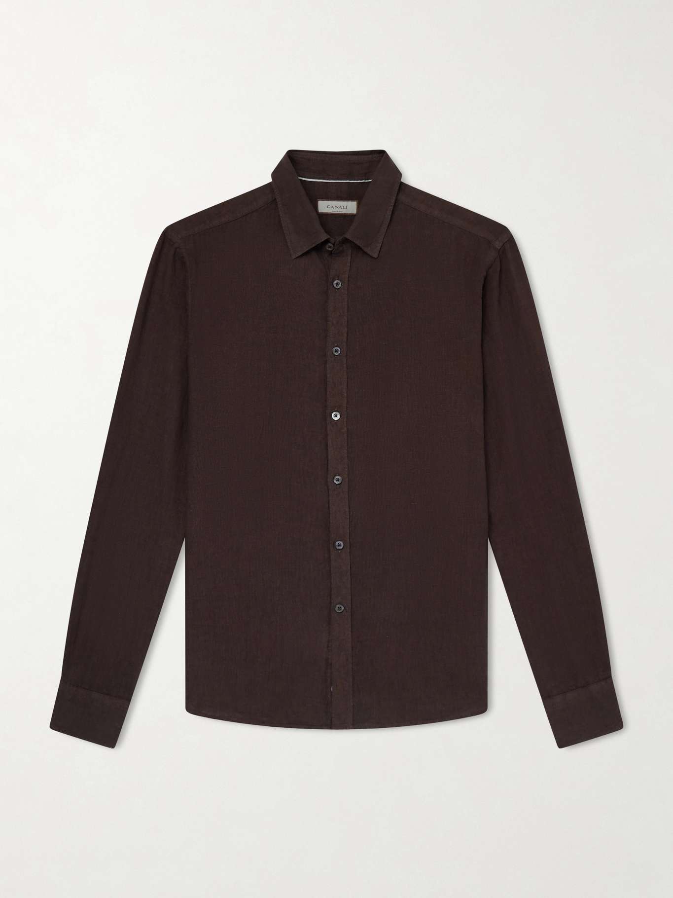 Canali delivers refined clothing with timeless Italian elegance. This shirt is cut from airy linen in a relaxed fit, with long cuffed sleeves and a pointed collar, finished with mother-of-pearl buttons down the front for a softly structured, polished layer.