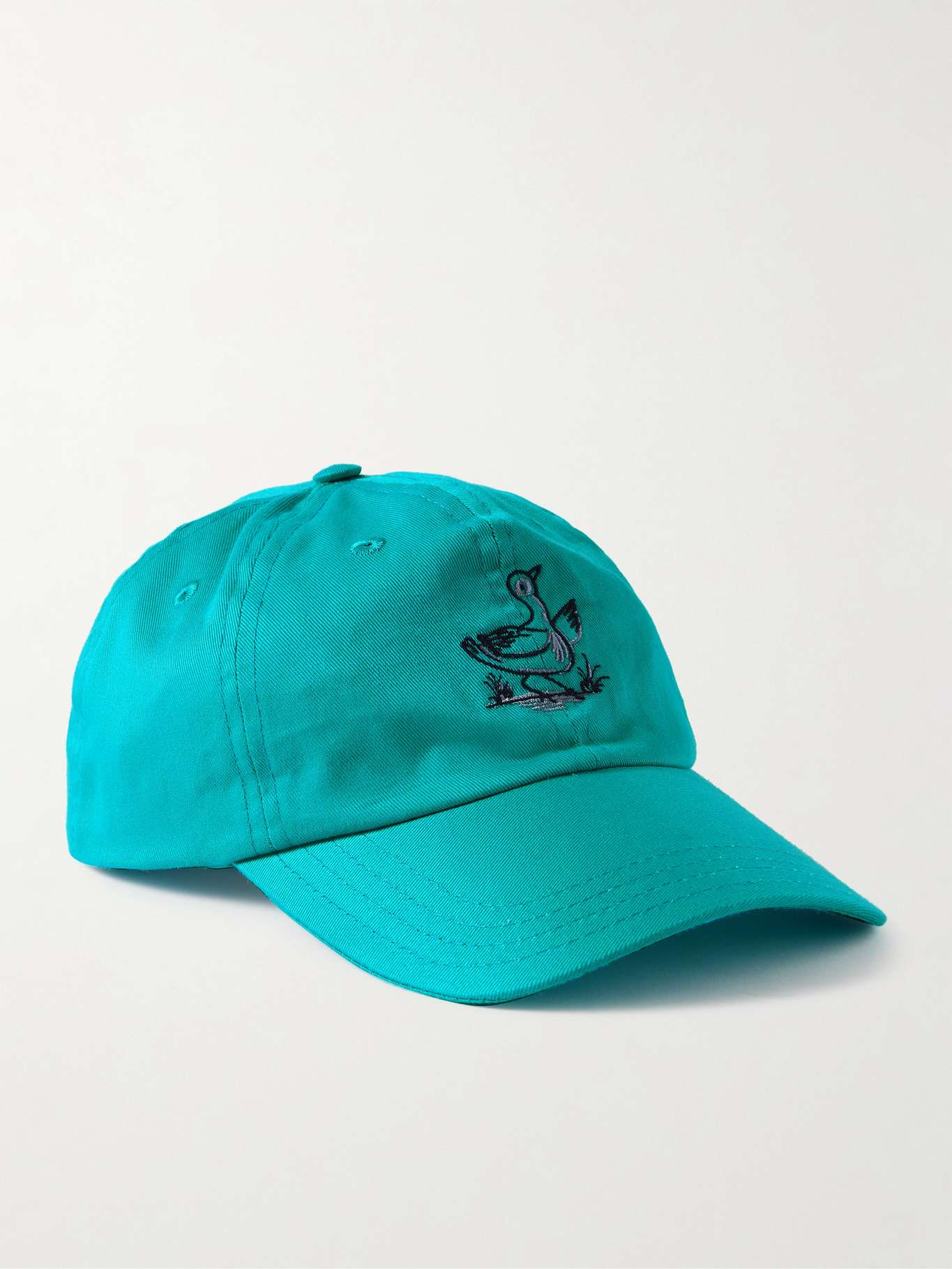 Playful prints have always been a part of Drake's collections. From its collaboration with HIM, this baseball cap is made from turquoise cotton-twill and embroidered with a duck, inspired by British country life, on the front.