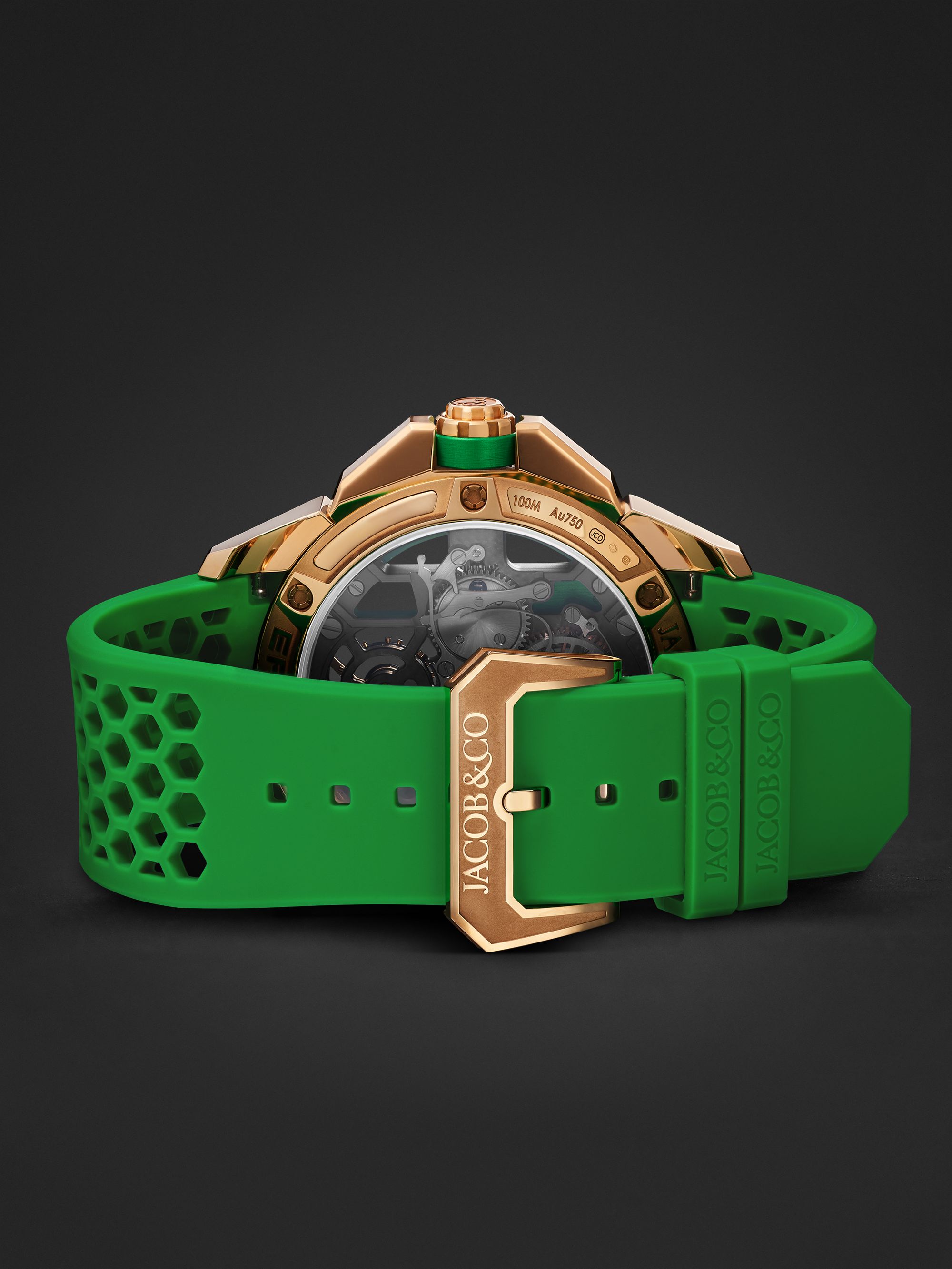 JACOB & CO. Epic X Limited Edition Hand-Wound Skeleton Chronograph 44mm 18-Karat Rose Gold and Rubber Watch, Ref. No. EX120.43.AC.AC.ABRUA