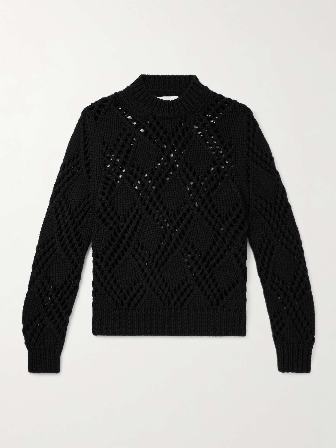 Jil Sander's sweater is open-knitted with a diamond pattern, which creates nice dimension when layered over a contrasting T-shirt. It's made from insulating wool and has thick ribbed trims.