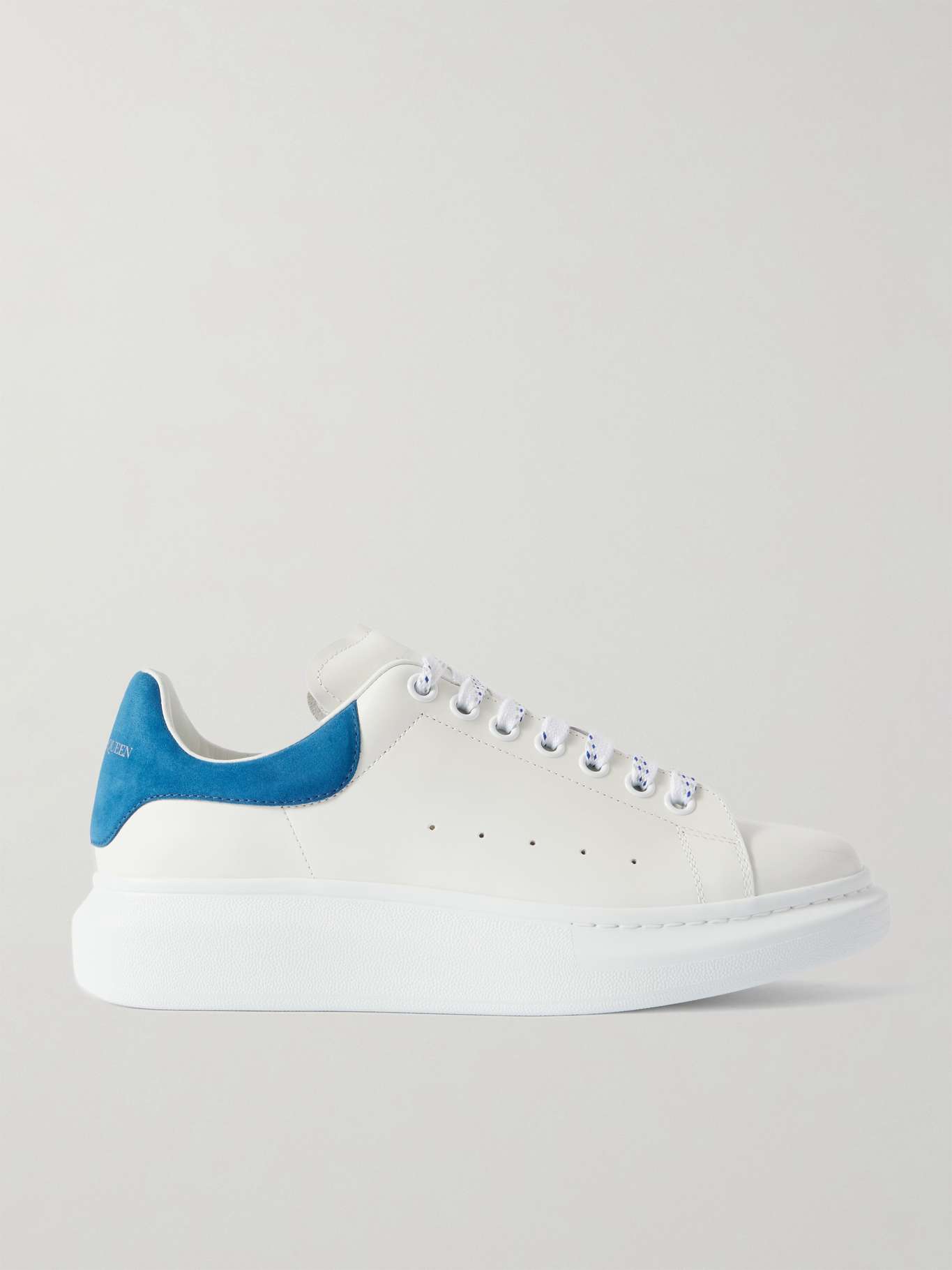 McQueen's exaggerated-sole sneakers need no introduction – they've been popular since 2016. This pair has been made in Italy from white leather trimmed with 'Paris Blue' suede heel tabs and set on chunky rubber soles.