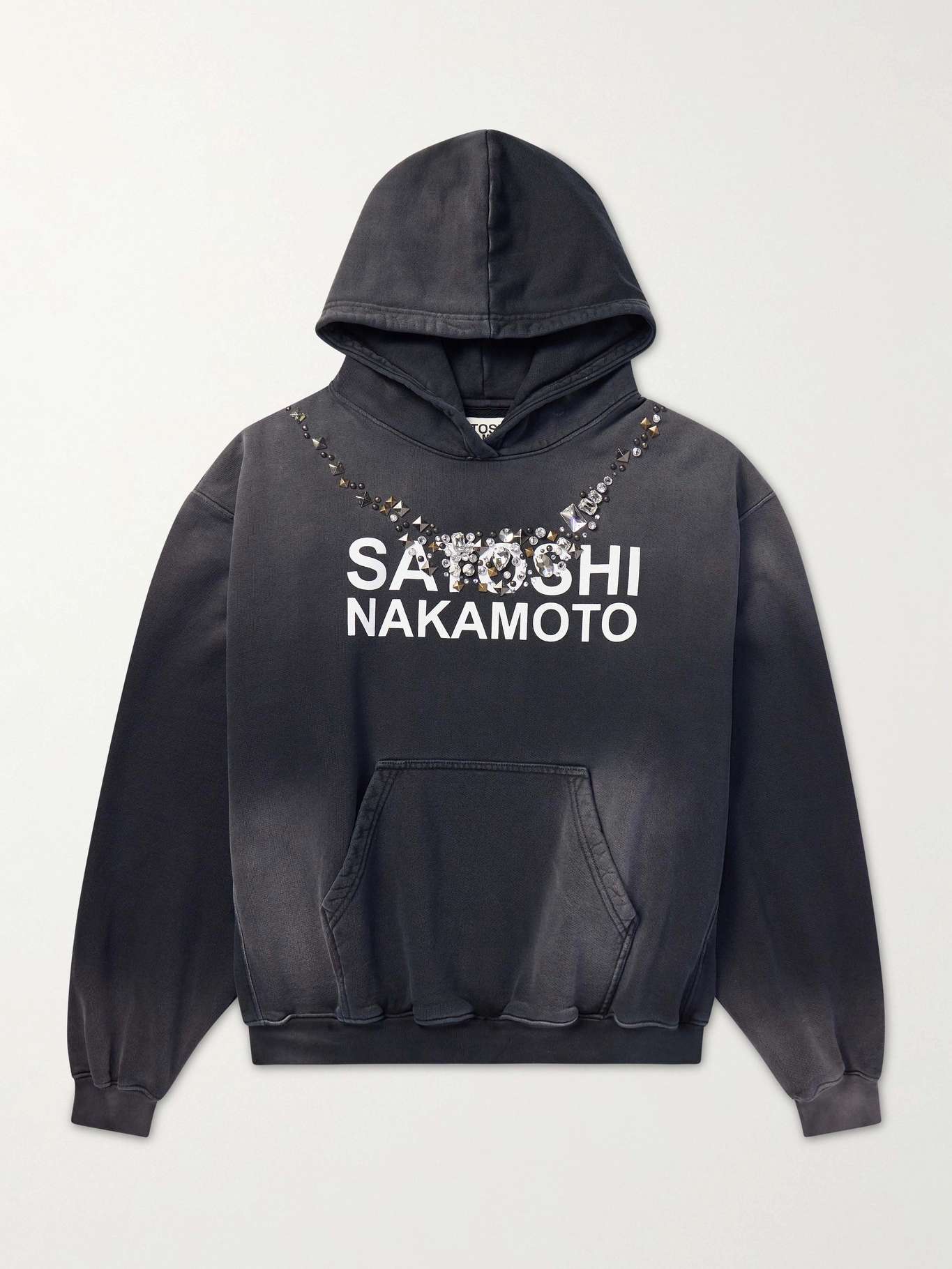 SATOSHI NAKAMOTO Logo-Print Embellished Cotton-Jersey Hoodie