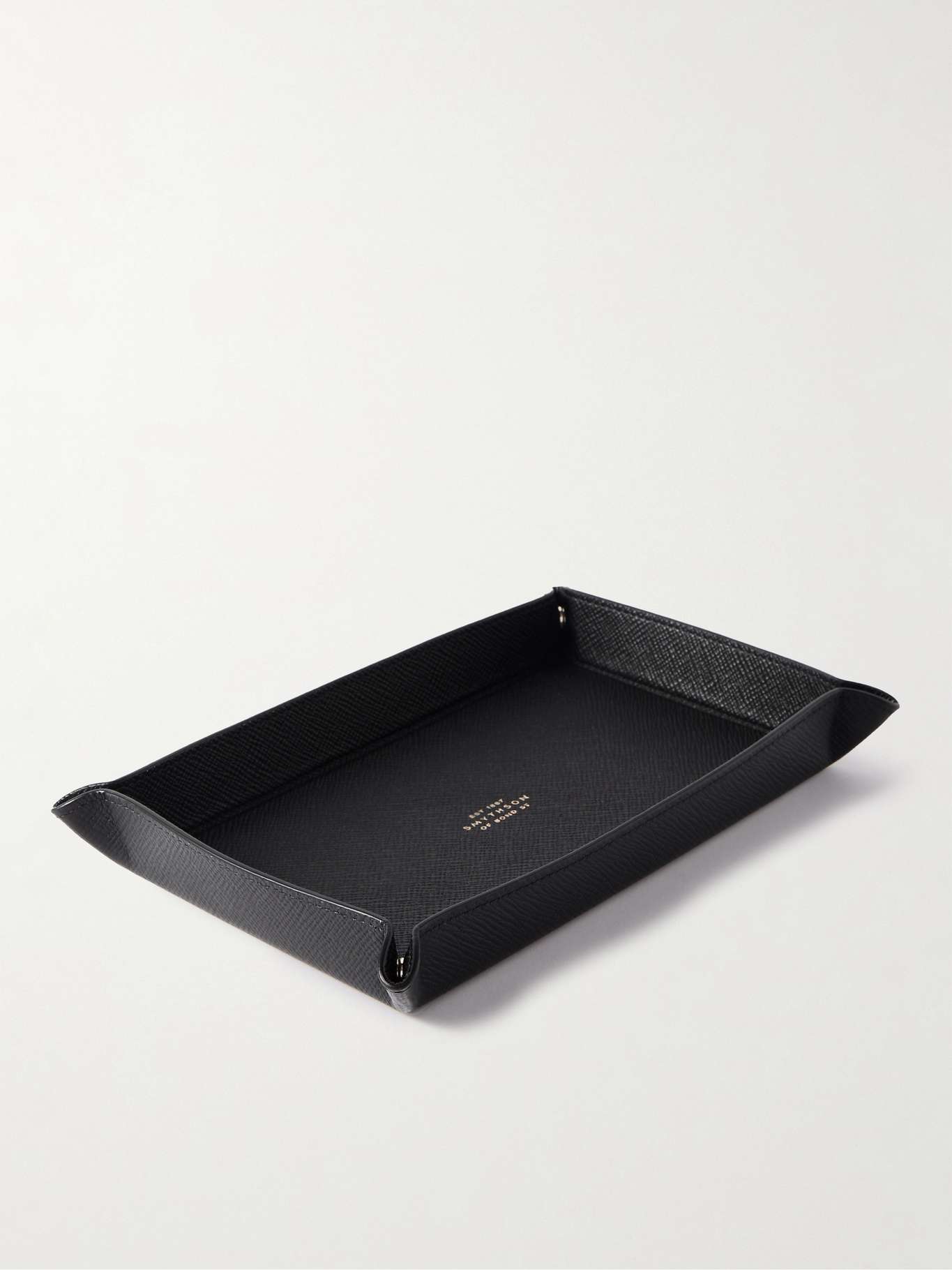 Smythson's trinket tray has been made in Italy from signature 'Panama' cross-grain leather, which has been used to craft the brand's iconic diaries since 1908. Perfect for storing small items like your keys, it has collapsible sides and is printed with a gold foil logo at the centre.
