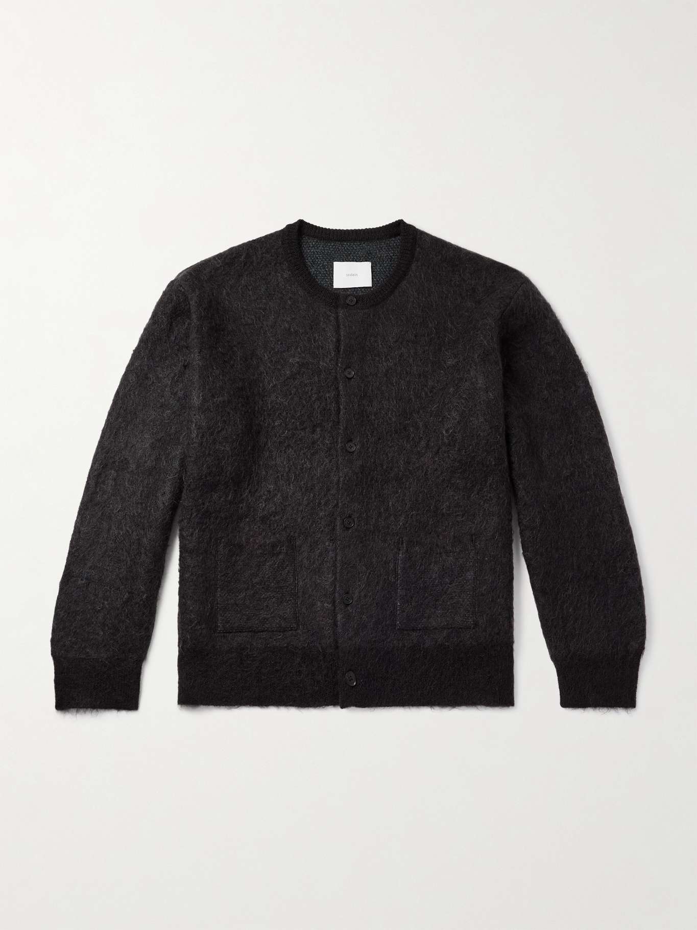 ssstein's cardigan is knitted with a touch of mohair and wool and has a fluffy, brushed finish. The collar, cuffs and hem are a slightly darker shade for visual contrast.