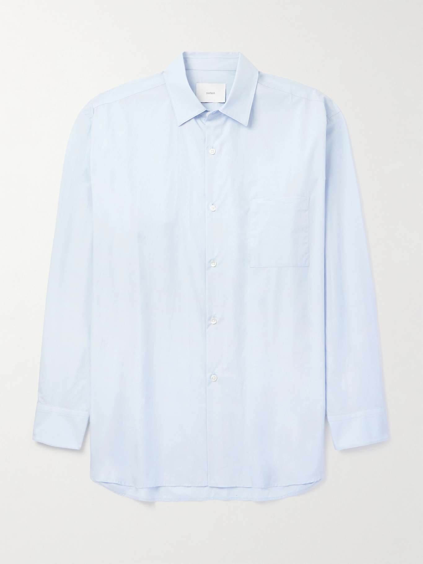 ssstein's 'Suvin' shirt is cut to generous proportions from cotton-poplin. It falls to a curved hem, which can be left untucked on casual days.