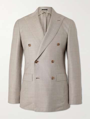 Double-Breasted Silk, Cashmere and Linen-Blend Suit Jacket