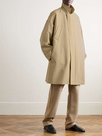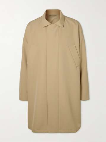 Oversized Double-Breasted Logo-Appliquéd Wool-Blend Flannel Coat