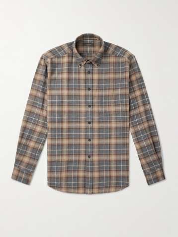 Button-Down Collar Checked Cotton-Flannel Shirt