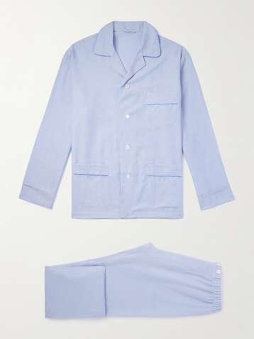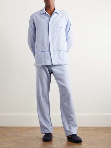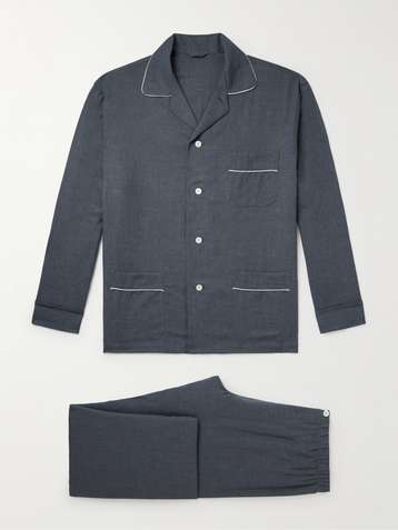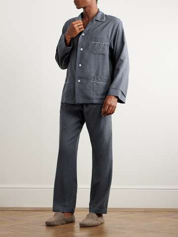 Camp-Collar Cotton and Cashmere-Blend Twill Pyjama Set
