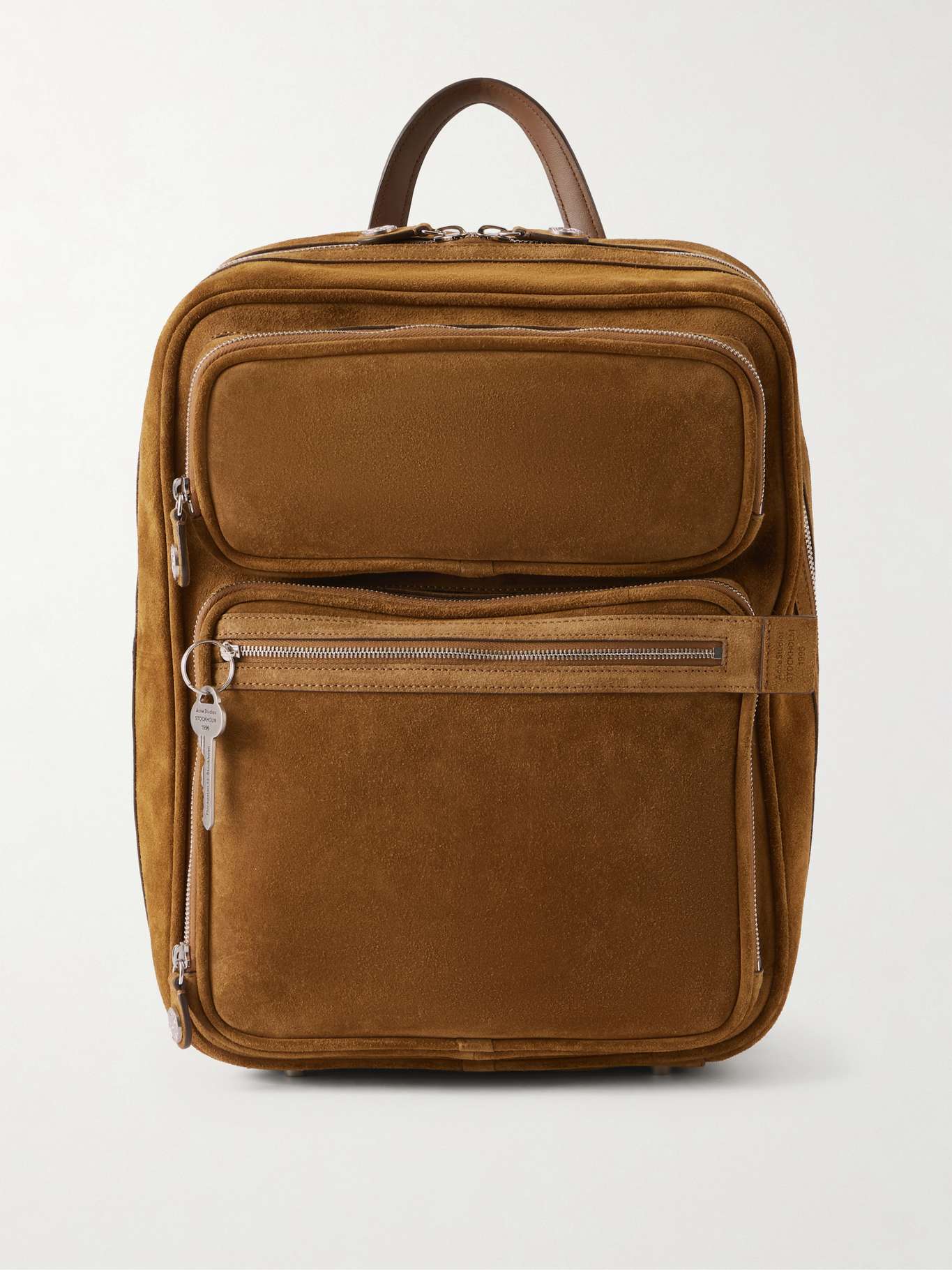 This backpack may feel familiar, because it's the vertical version of Acne Studios' buzzy 'Camero'. Made from suede, it has buckled shoulder straps and pockets outlined by silver-tone zips. Inside fits a laptop and noise-cancelling headphones.