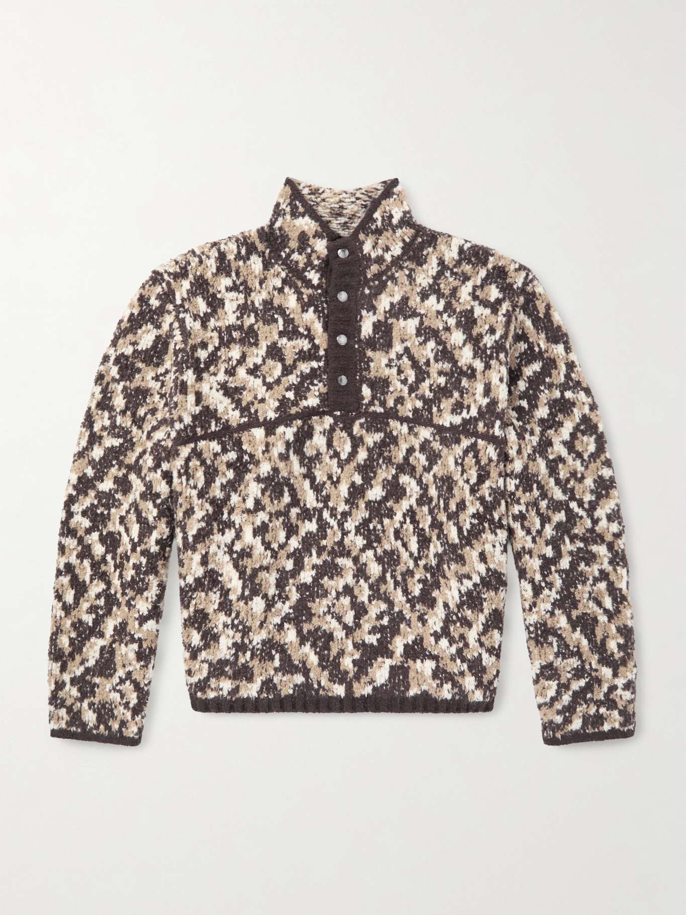 Aimé Leon Dore's 'Chalet' sweater is knitted using plenty of wool for a tactile, fleecy handle. Designed with cosying up in mind, it has an all-over abstract pattern that's offset by a solid brown collar, placket and hem. The snap fastenings provide styling and layering options.