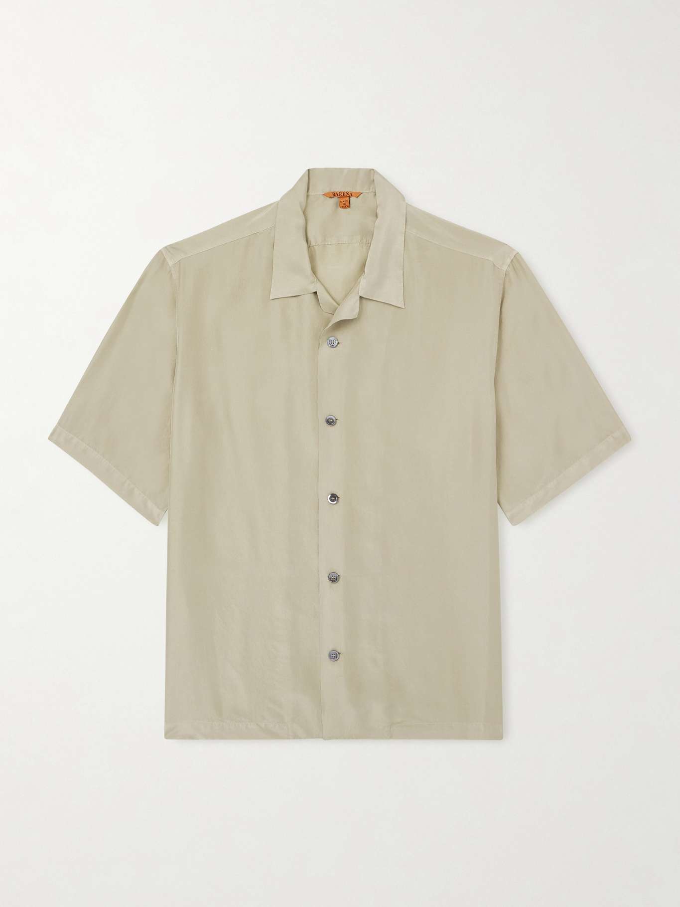 Barena's 'Solana' shirt is cut from silk, which has been garment-dyed for an even softer handle. It has a relaxed camp collar and contrasting mother-of-pearl buttons.
