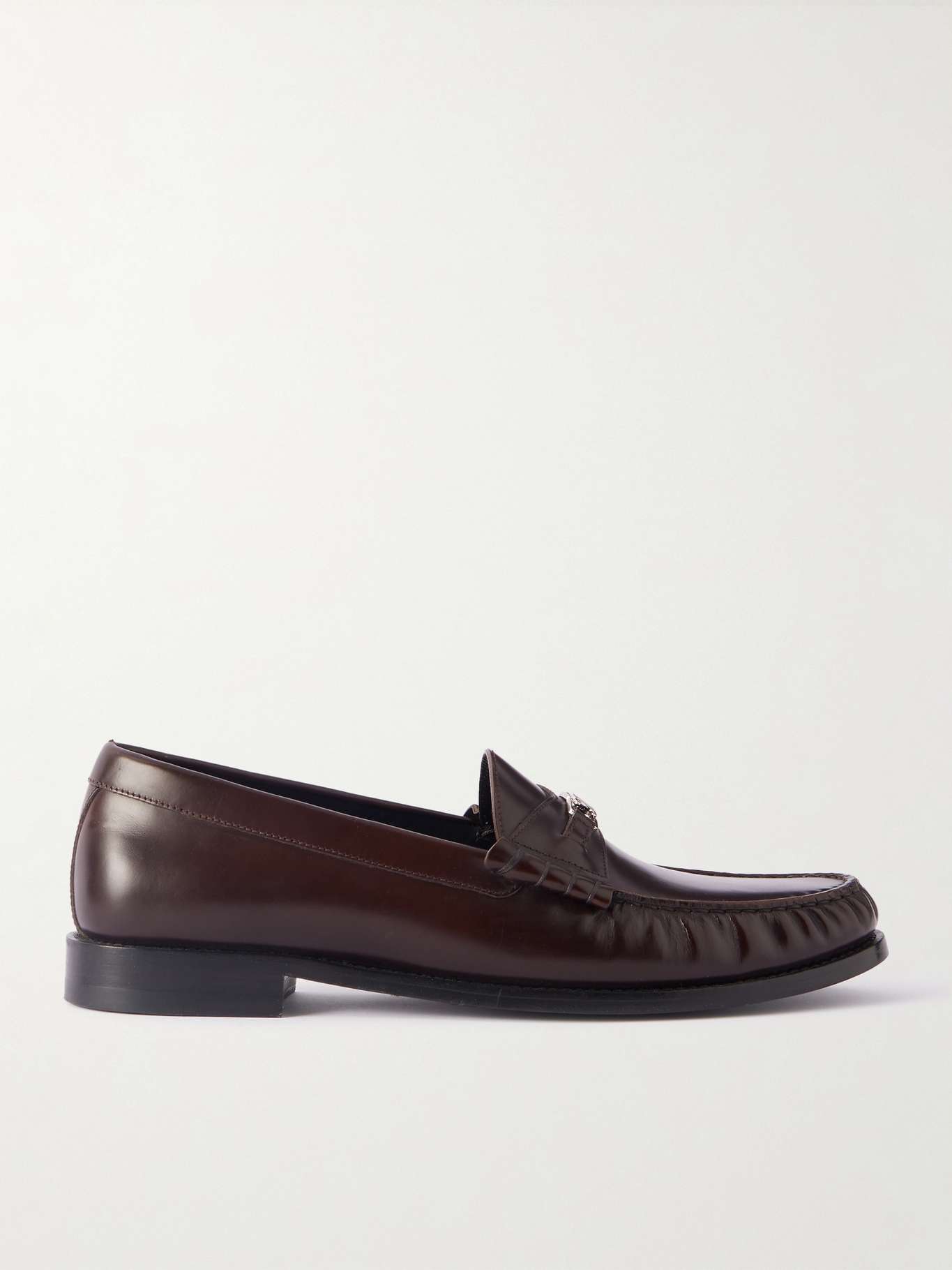 CELINE Logo-Embellished Polished-Leather Penny Loafers